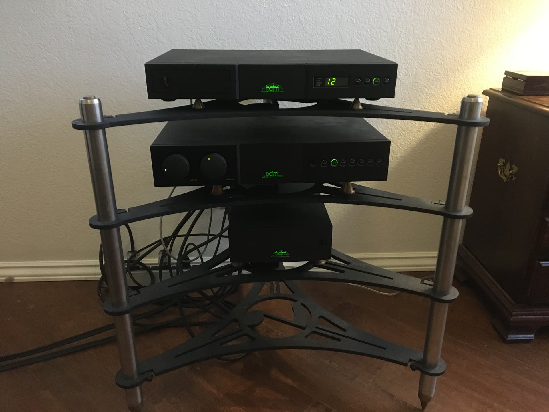 I have a Supernait 2 which I love, paired with my Vandersteen 2ce Signatures. CDX2 and HiCap, Naim speaker cables, upgraded Naim interconnects and power cords, sorry can’t remember their nomenclature, and my matching rack/speaker stands , which are ABSOLUTELY a component that improves the sound…