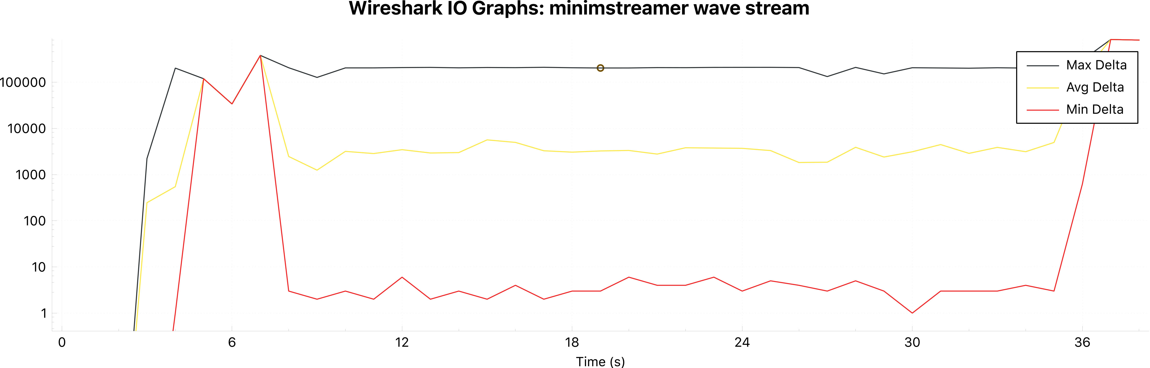 You ideally should configure and use a SPAN port on a managed switch such as a 2960 or similar that is monitoring the switch port to your streamer and feed the SPAN data into a dedicated monitor interface with no other traffic. I use a separate USB ethernet interface on my iMac which I configure Wireshark to monitor. That way you are are relatively close as you can be to the actual frame timings