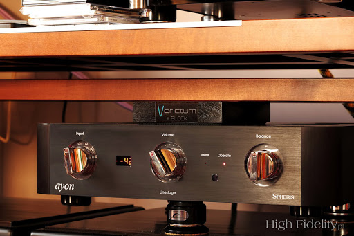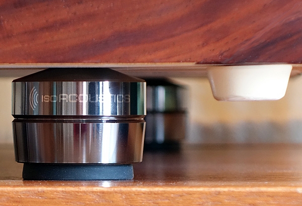 Finally got the glass shelves out from under my speakers (replaced by borrowed Living Voice marble slabs).