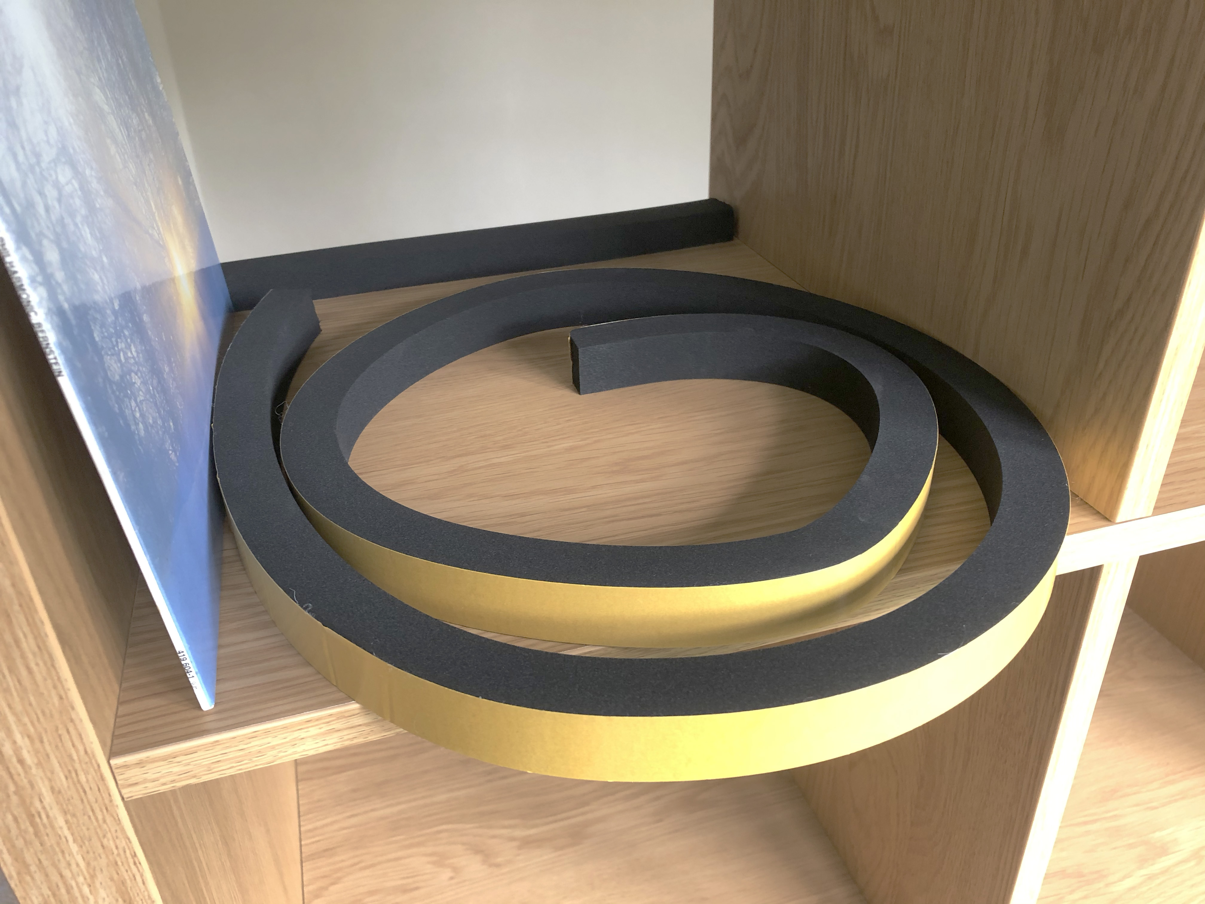 It’s 2 cm high density foam. The black bit is the foam, but it has a really sticky layer with glass fibre re-inforcement. I’ve just replaced my LPs and I’m so happy. A really good hack. So simple.