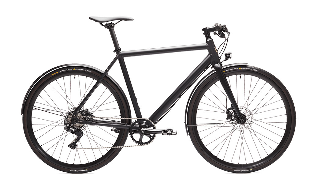 Kona Dew Drop, but fitted with Cane Creek brake repeaters, mudguards, rear carrier, air horn. Chosen as having the widest gear range I could find on a standard road bike to cope with most things (I’m not athletic, so need a very low gear getting up hills, while I pedal except on the steepest downhill). Drop bars because I don’t like wide bars, and gives the option of greater streamlining when against a strong wind, and disc brakes for best performance even when riding through puddles (mudguards for that, too!) As you can tell, I live in a place that is not flat, and is often windy and wet! I great commuter bike, that can do longer runs, but not exactly a light bike.