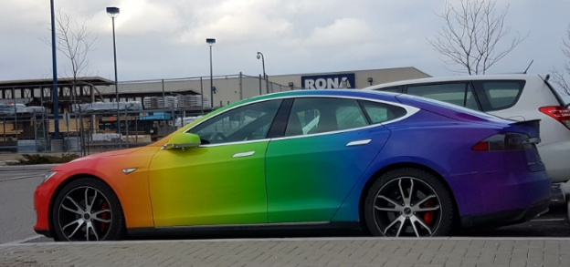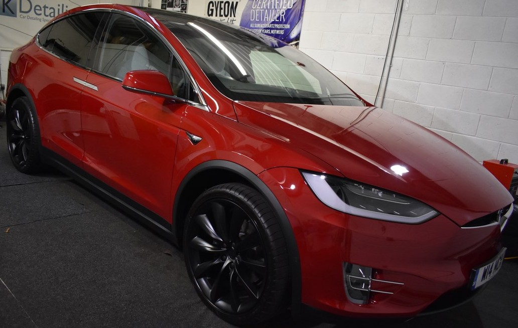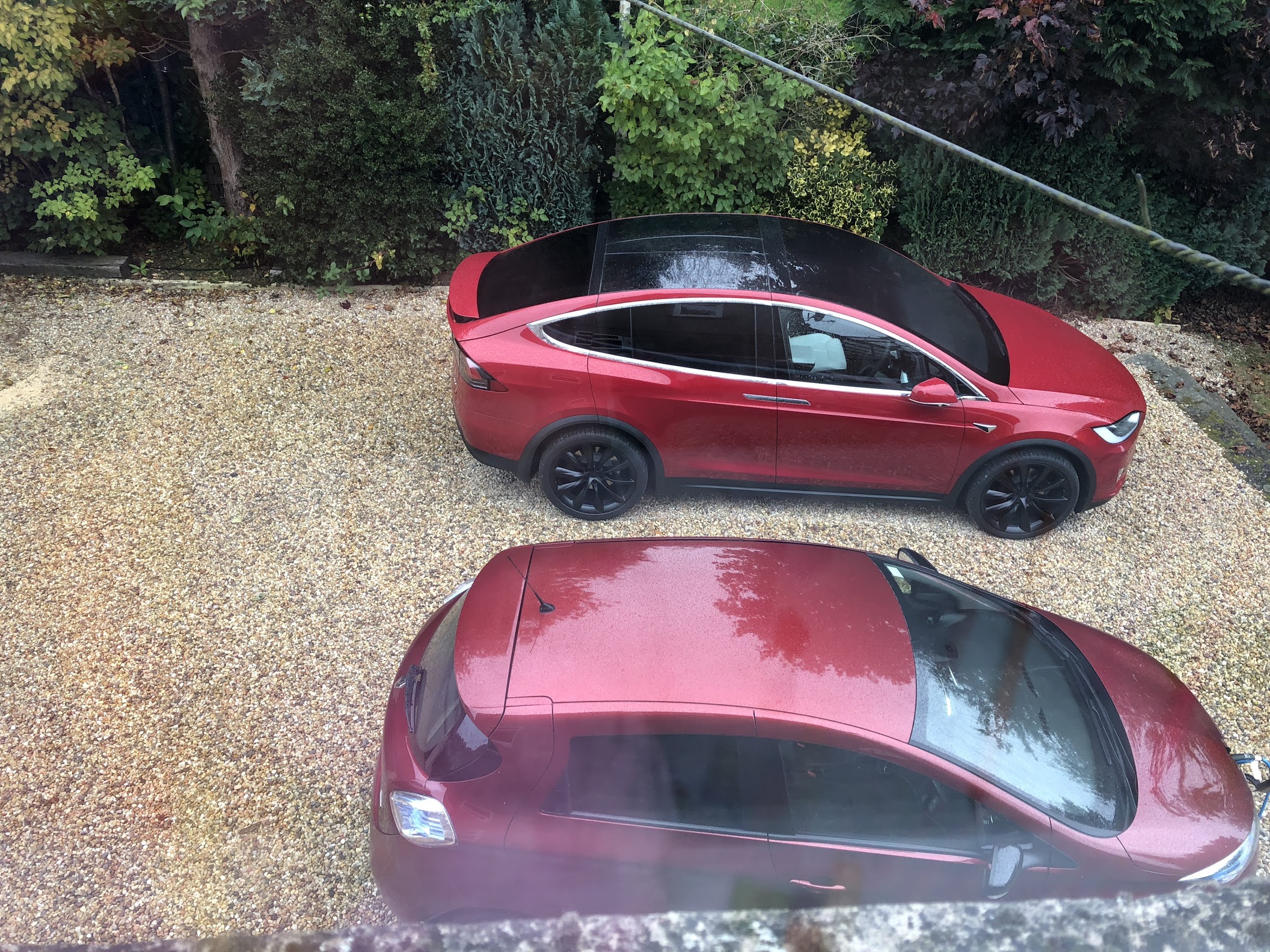 Tesla Model X - this one with a much nicer paint job that Tesla offer, Which matches whatever you wear!