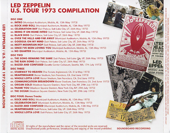 A wonderful 4-CD Japanese set which compiles the best performances from the US tour of 1973 into a seamless “single concert” experience. Great SQ on this, and some superb performances. It makes a great companion piece to The Song Remains The Same as a souvenir of ‘73. I’ll see you in about four hours’ time: