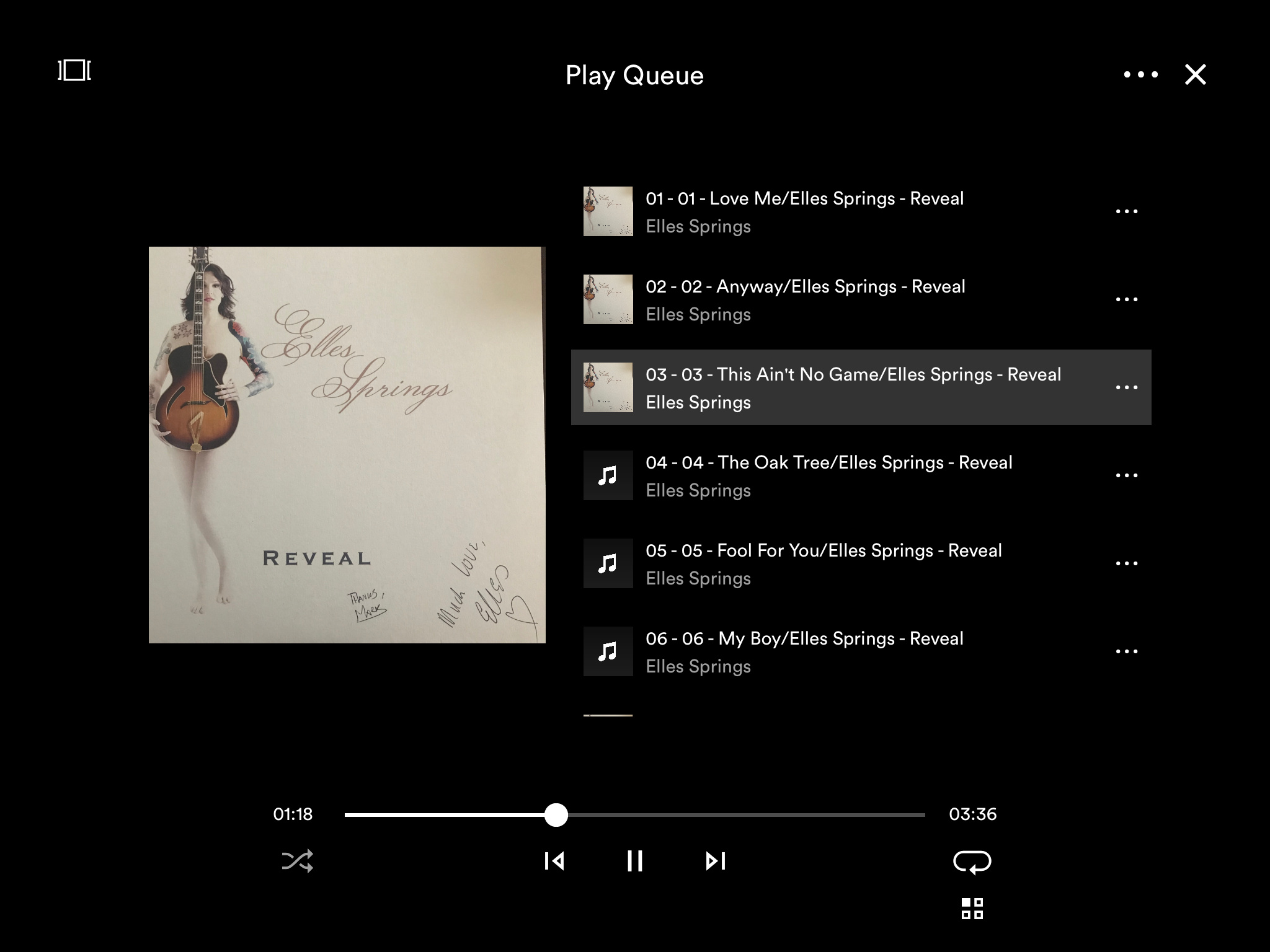 Stunning album, Elles writes deeply moving songs, she has a fantastic voice, she and Mark play them beautifully. Brilliantly recorded and produced as well. My favourite album of 2018. She’s working on writing more songs I hear.