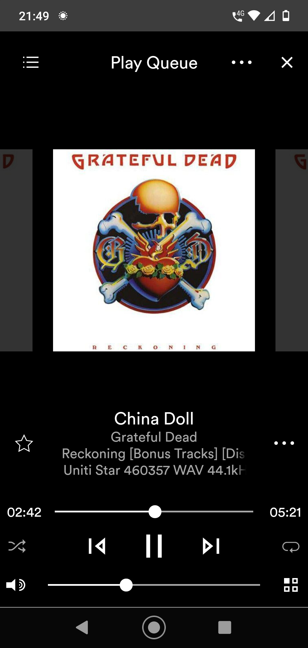 Been a long day so relaxing with the Dead ‘Reckoning’ (effectively ‘unplugged’) ripped CD. China Doll = goosebumps.
