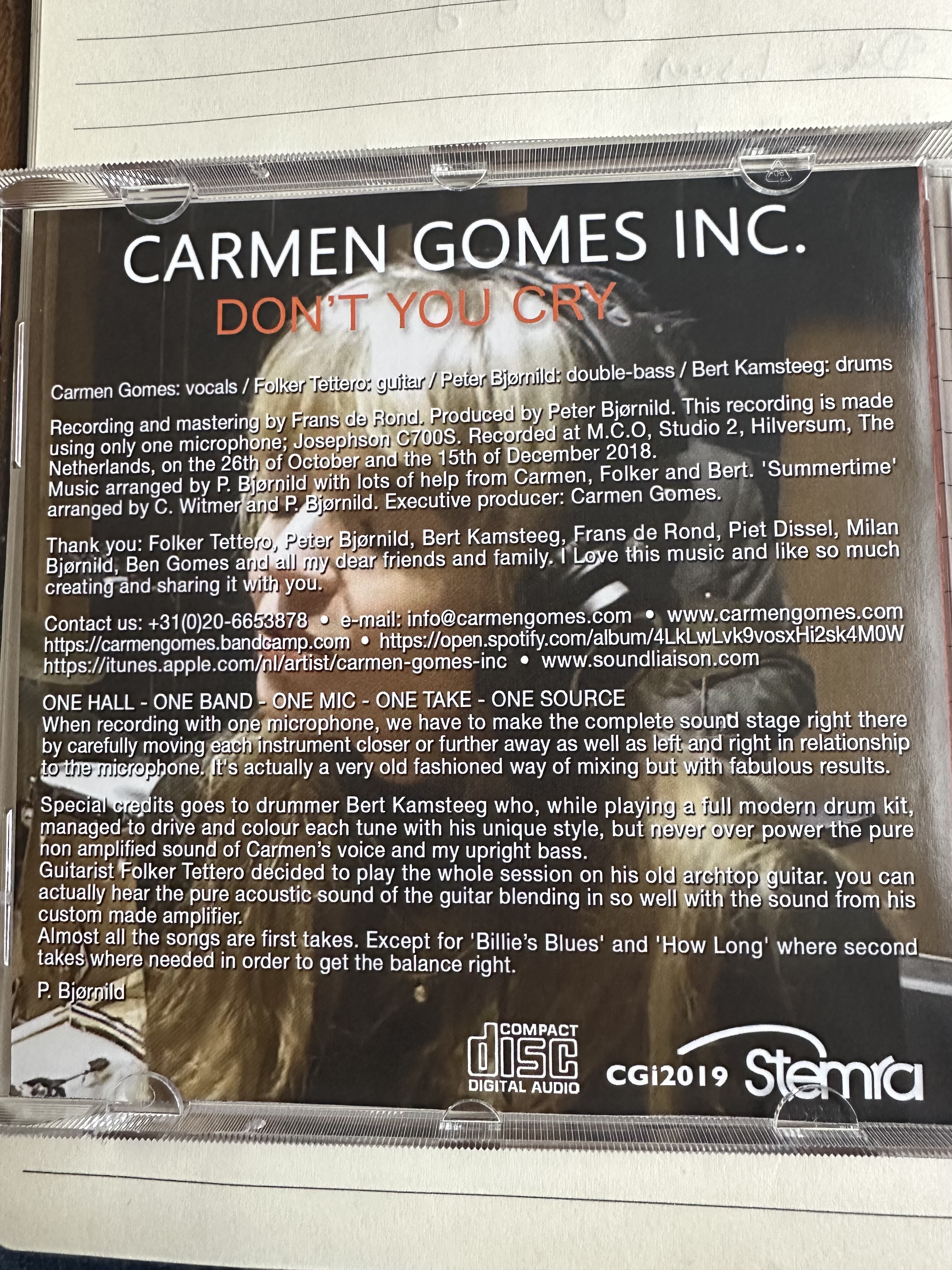Another delivery from Amsterdam, Carmen Gomes Inc. Don’t You Cry album on CD, single microphone recording.
