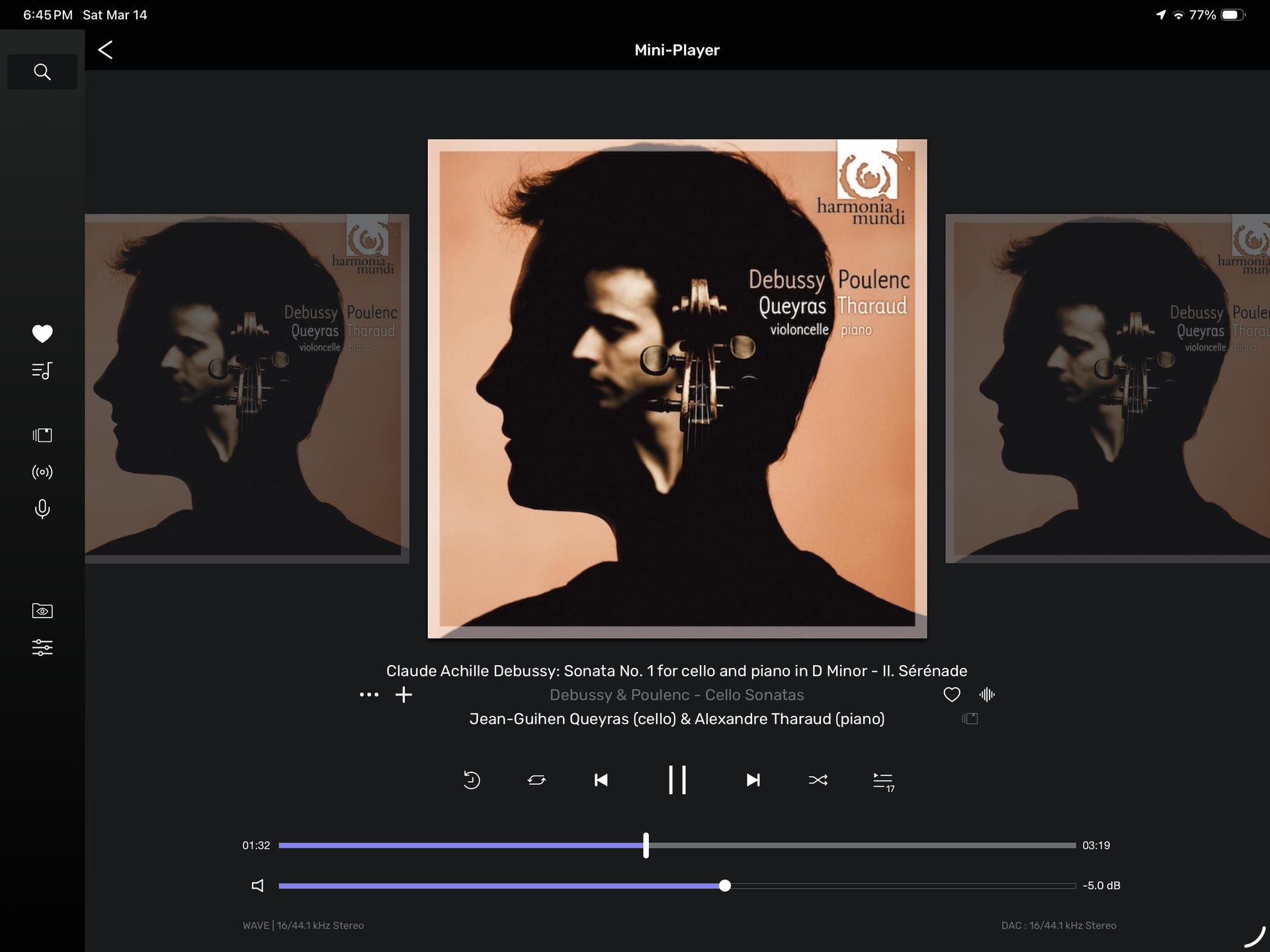 Very nice music (Debussy and Poulenc cello sonatas and other cello/piano work), very well played. Poulenc is growing on me as a composer (until recently I mostly knew his violin/piano sonata).