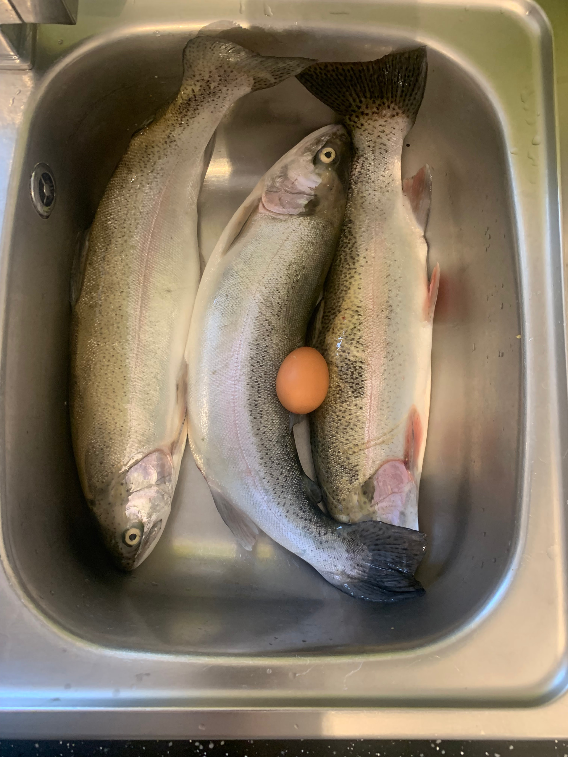 Will be prepping up these whopping great rainbow trout. 1 for tonight and the others for the freezer.