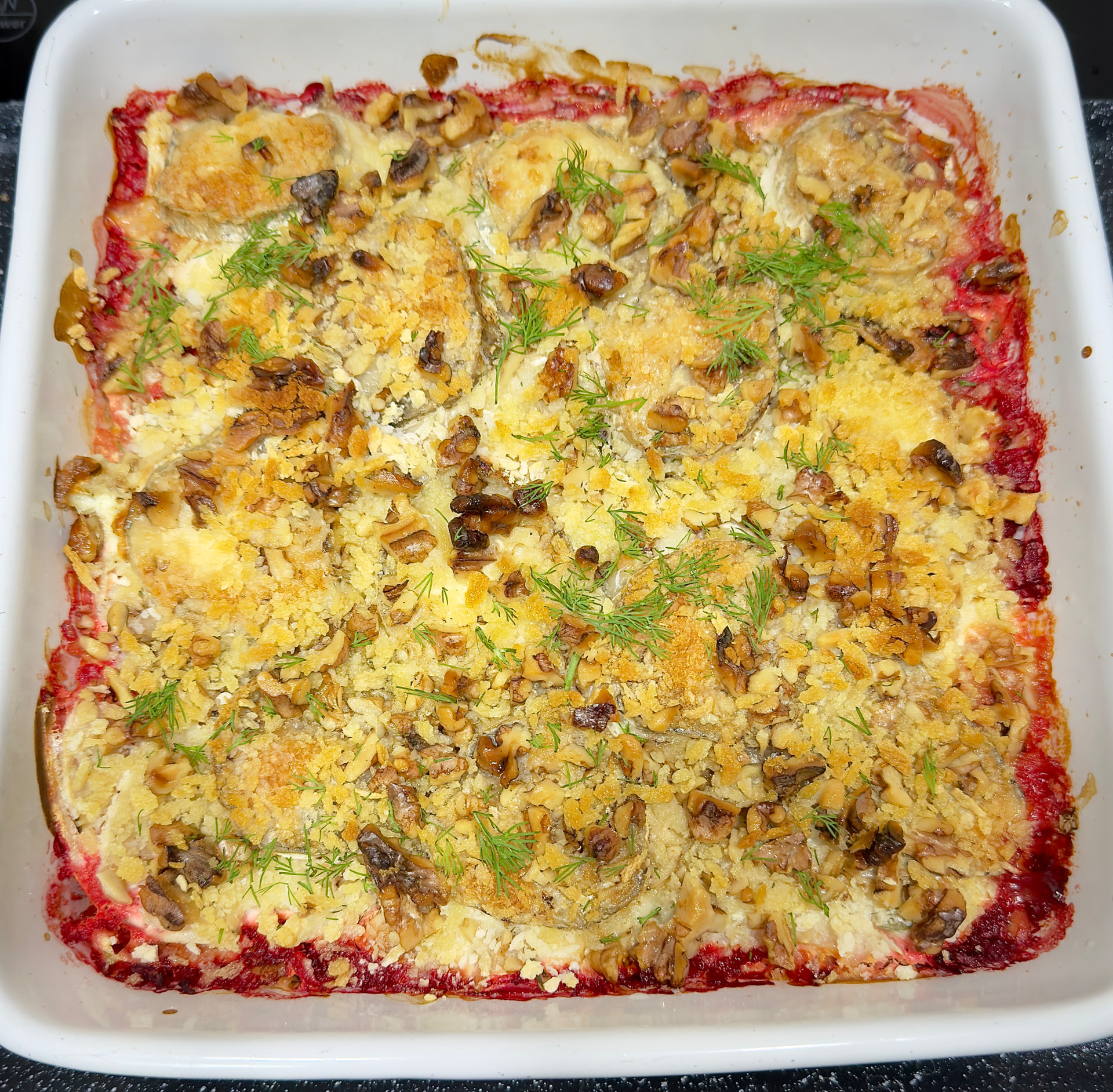 Was published as ‘celeriac and beetroot gratin with goats cheese’