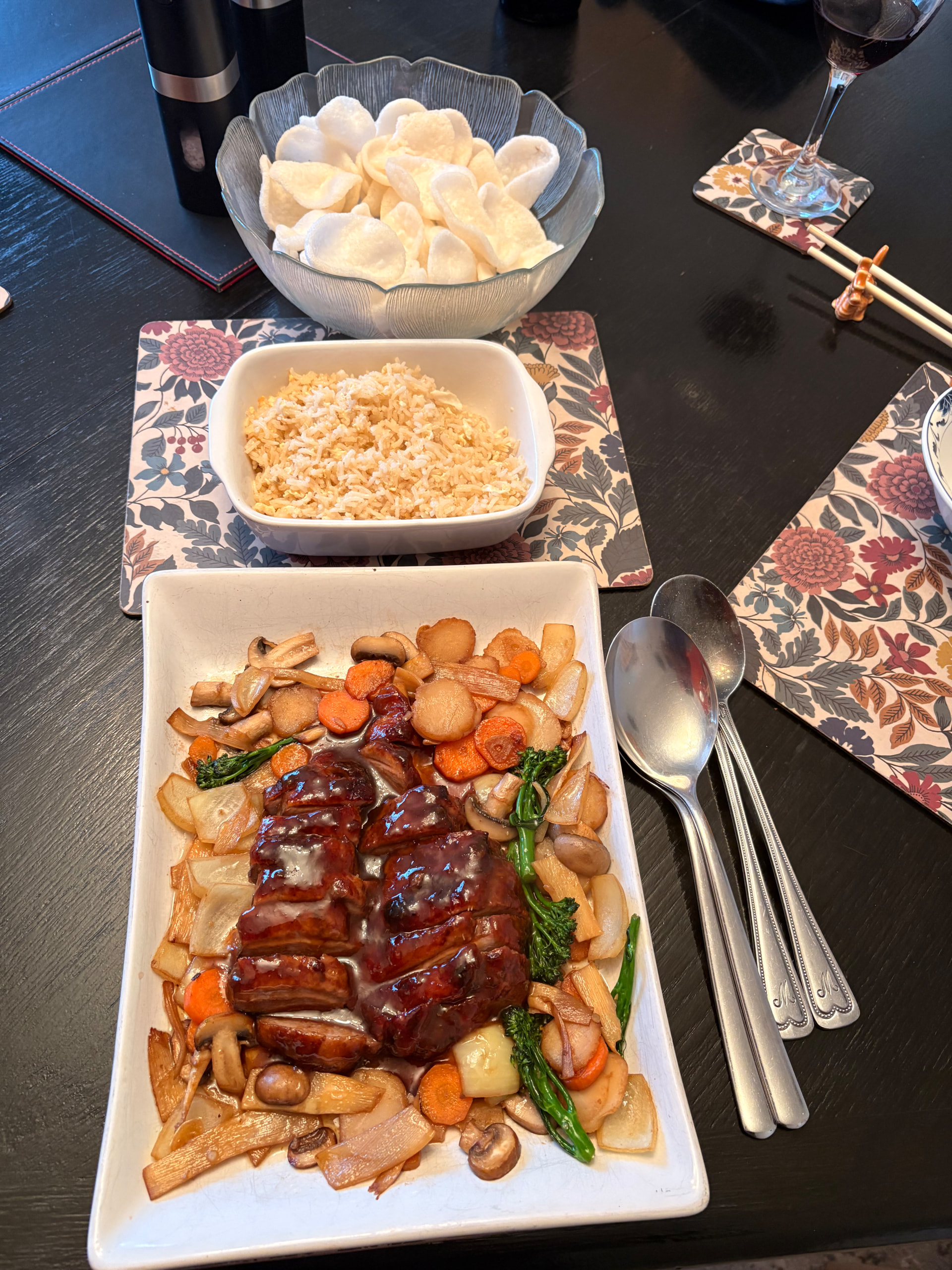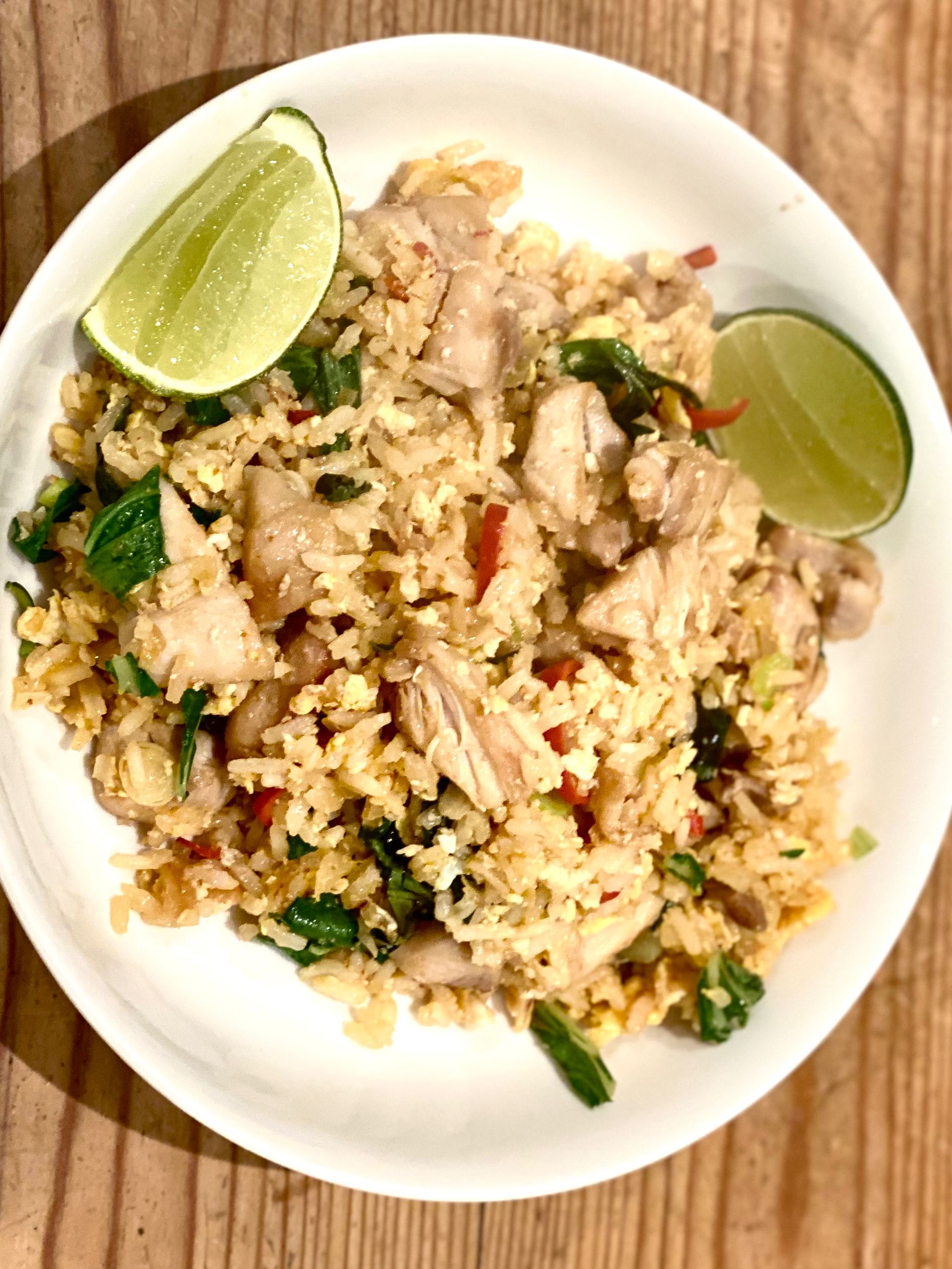 I’m on my own for 10 days so experimenting with Thai cooking. Chicken fried rice with garlic, chilli, and Thai basil.
