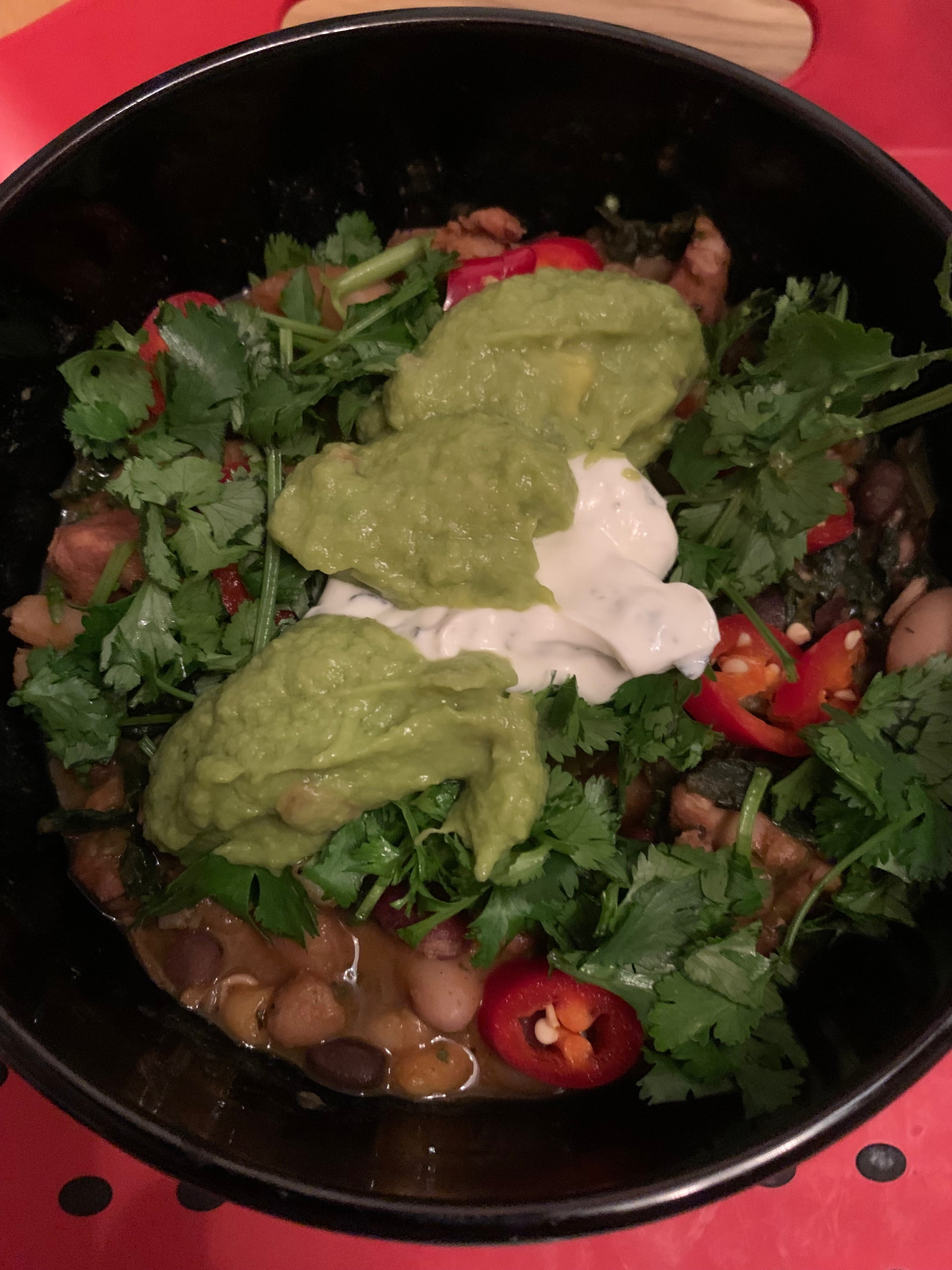 (Mint sauce - yes really. Guacamole. Tzatziki. Fresh coriander. Fresh chillies and pickled jalapeños)