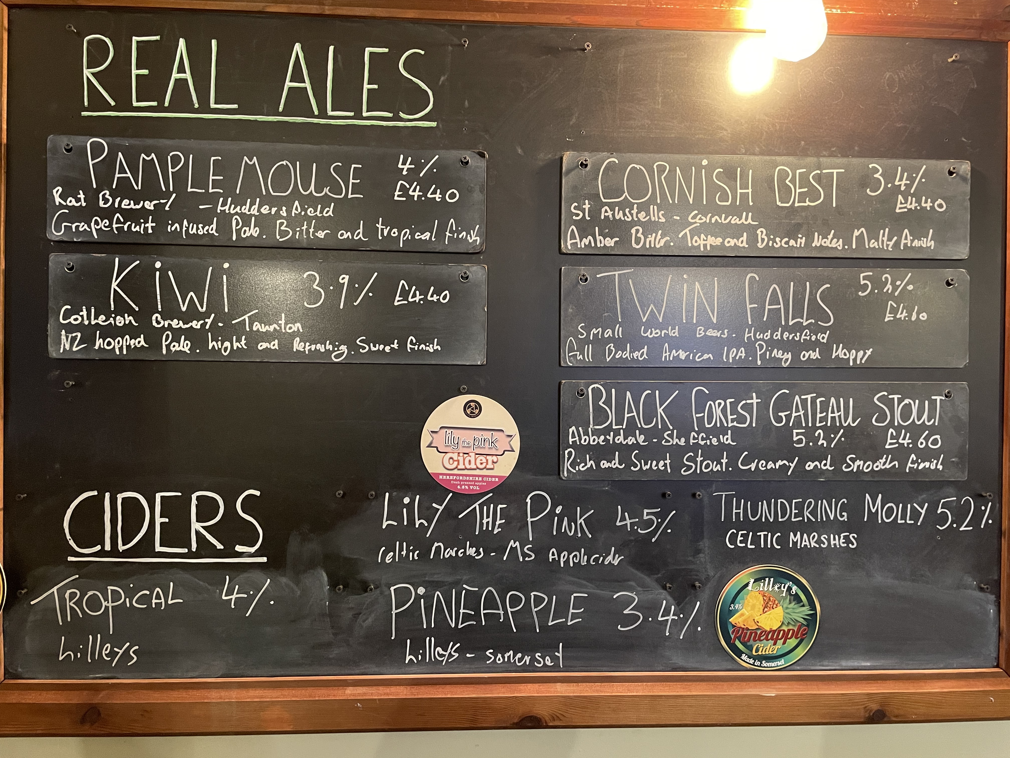 Bitter Suite, Lichfield. A disappointing selection. Cornish Best too thin, Twin Falls too full-on, although it improved in the glass.
