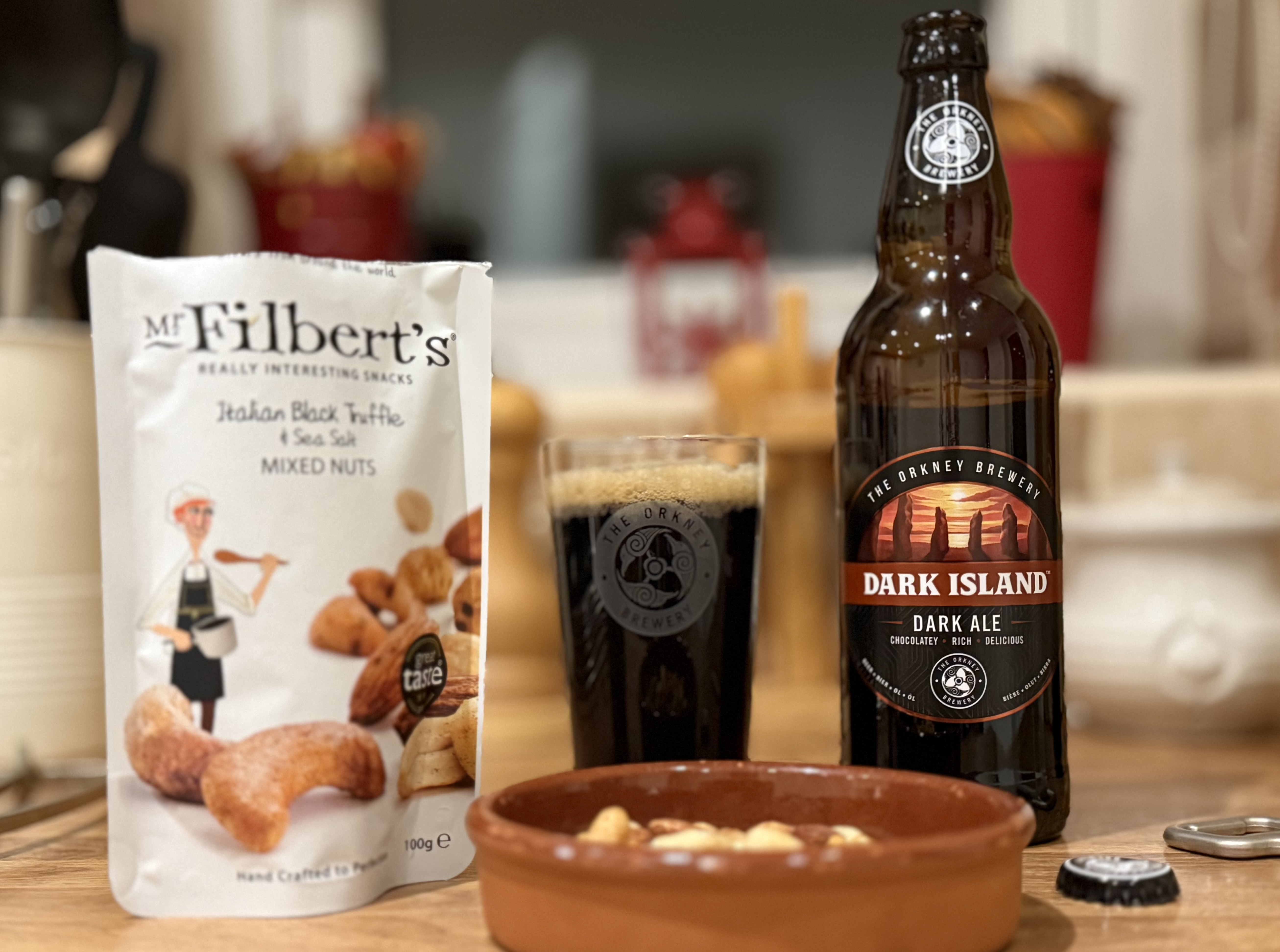 All set for the evening with a few bottles of Orkney ale. Dark Island first with Italian Black Truffle and Sea Salt Mixed Nuts. Culture clash in TS16.