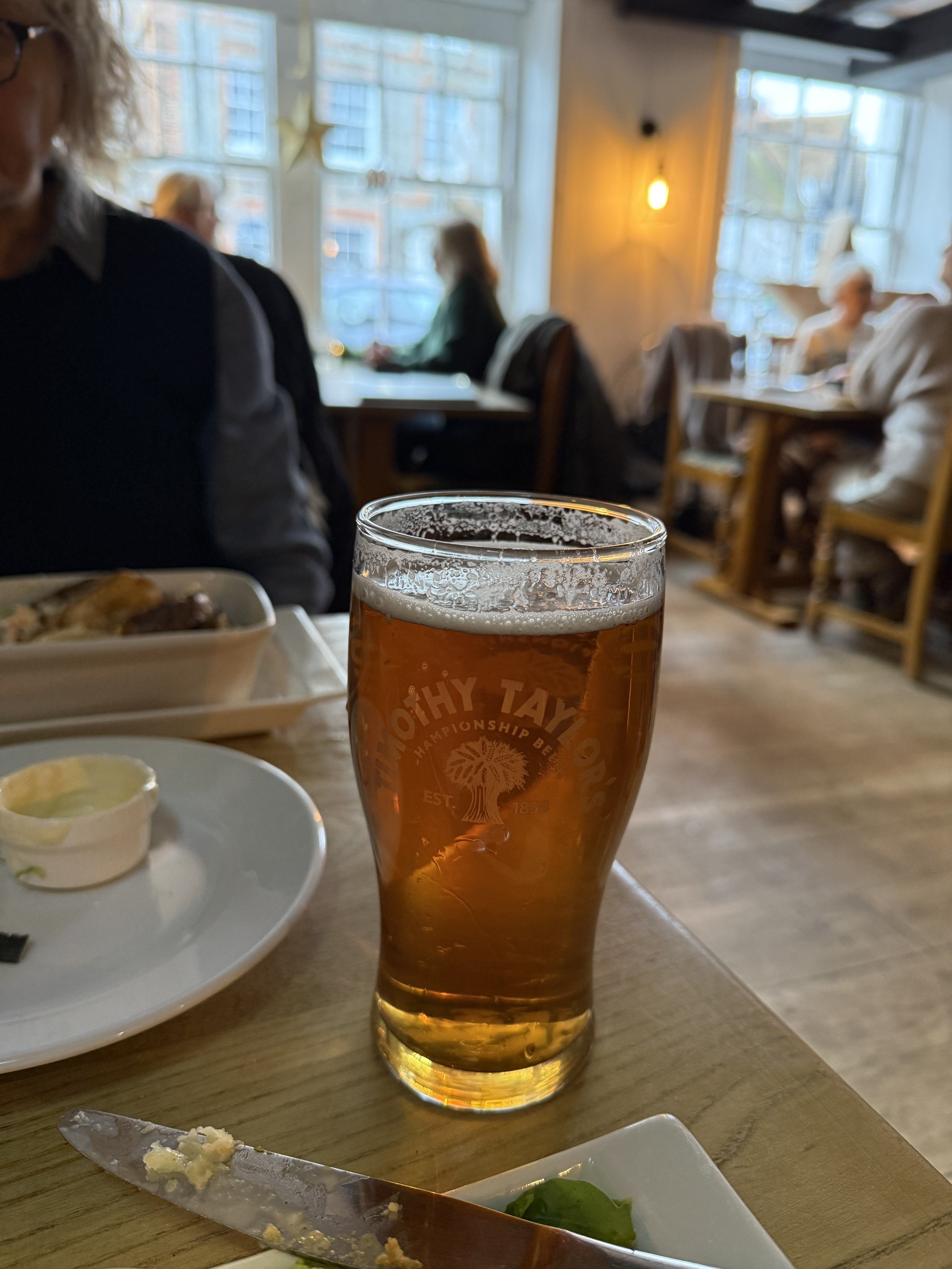 Landlord is one of my favourite beers. And what’s more, it’s now available in one of our local pubs, just over half a mile’s walk from the house, so what better way to spend lunchtime on New Year’s Eve. Great beer, a baked potato, perfect.