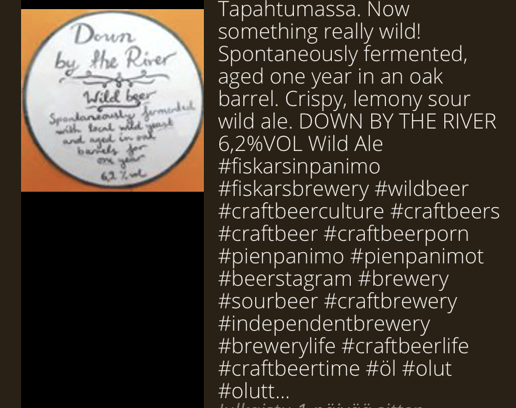 Had this @ Helsinki craft beer festival. Very much like a lambic; glass says: “Great beers, small breweries”.