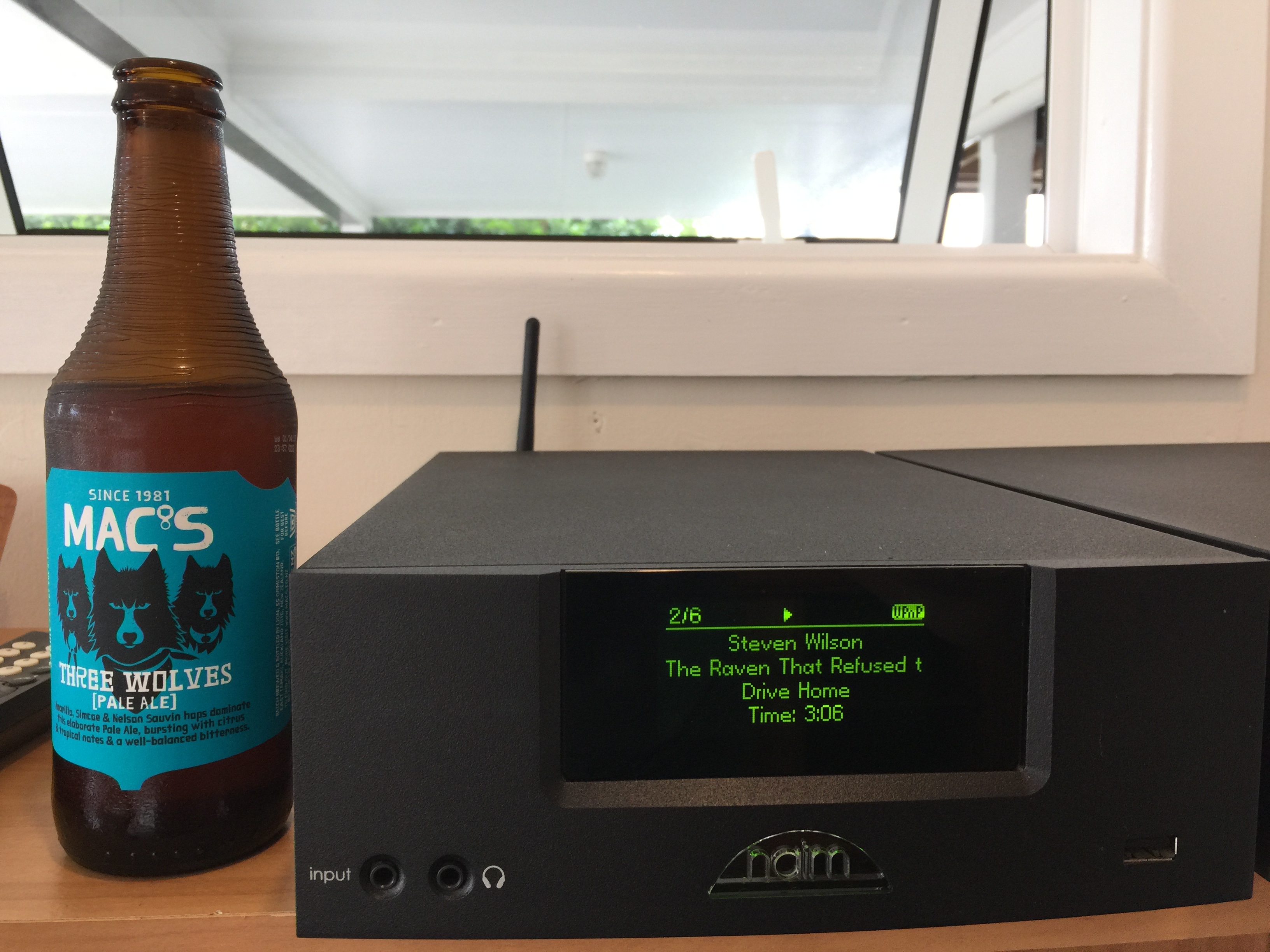 Mac’s Three Wolves IPA. Mac’s was one of the few real ale breweries in New Zealand back in the 80’s when I was younger lad. Back in the day, it was Mac’s Gold - a lager, and Black Mac - a stout. Real Ale/Craft Beers are now a thing here, and this is quite a hoppy Pale Ale, enjoyed at the pool table with a bit of Naim PRAT.