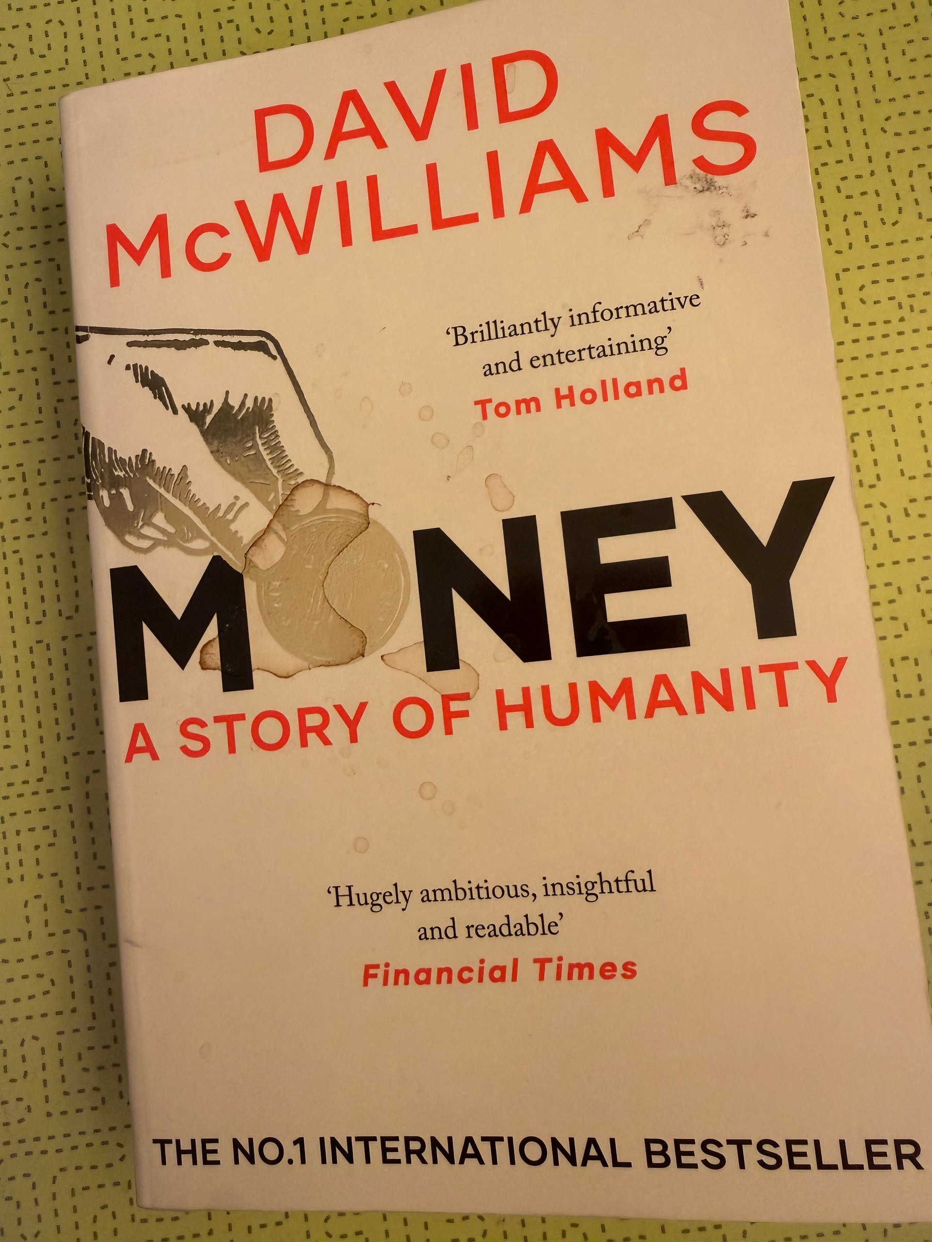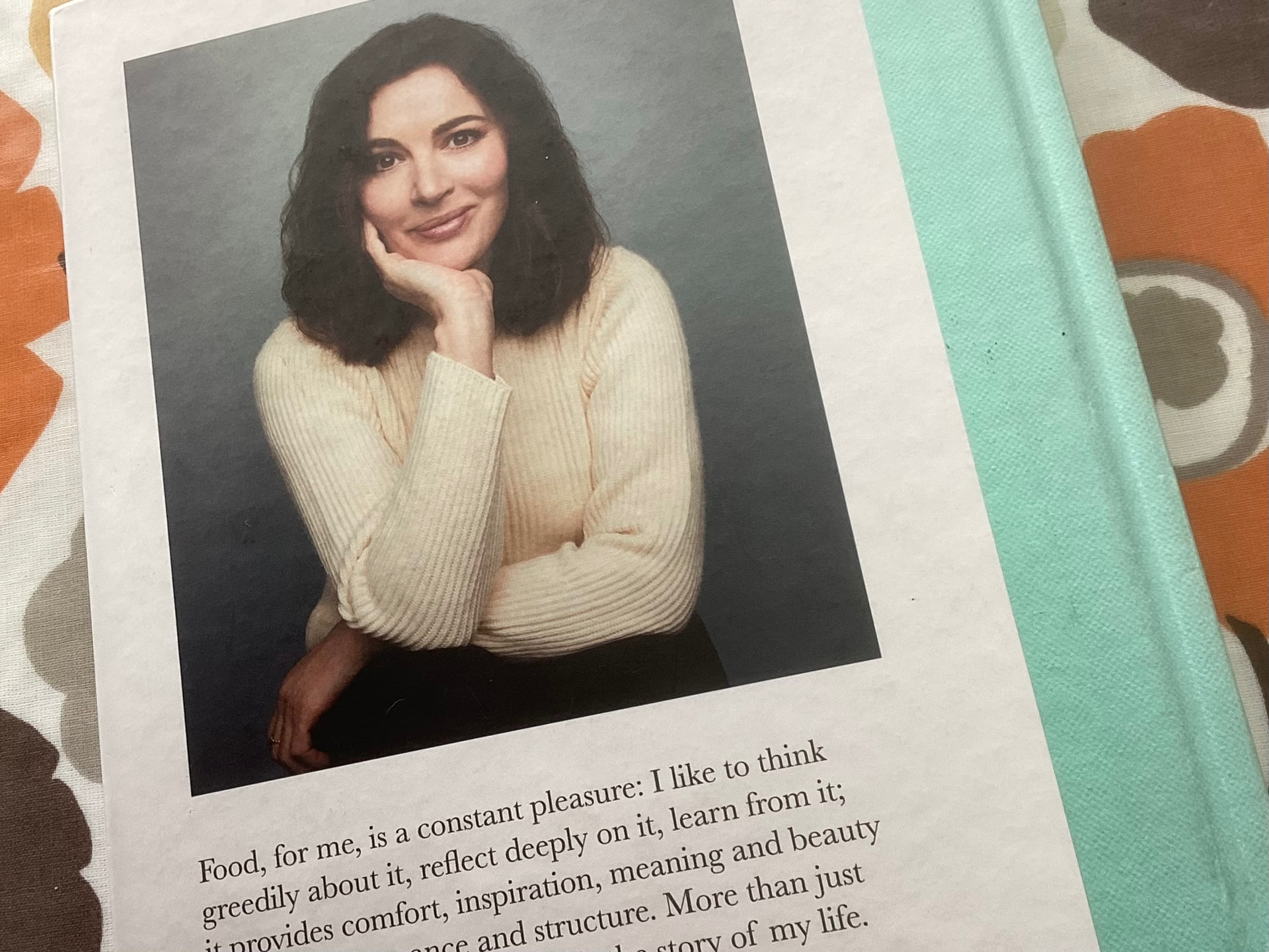 A library loan. I don’t cook very much now but like to read whilst eating my M&S dinner. I spent soo many nights alone in hotels whilst working that reading and eating together is a skill I have never lost.