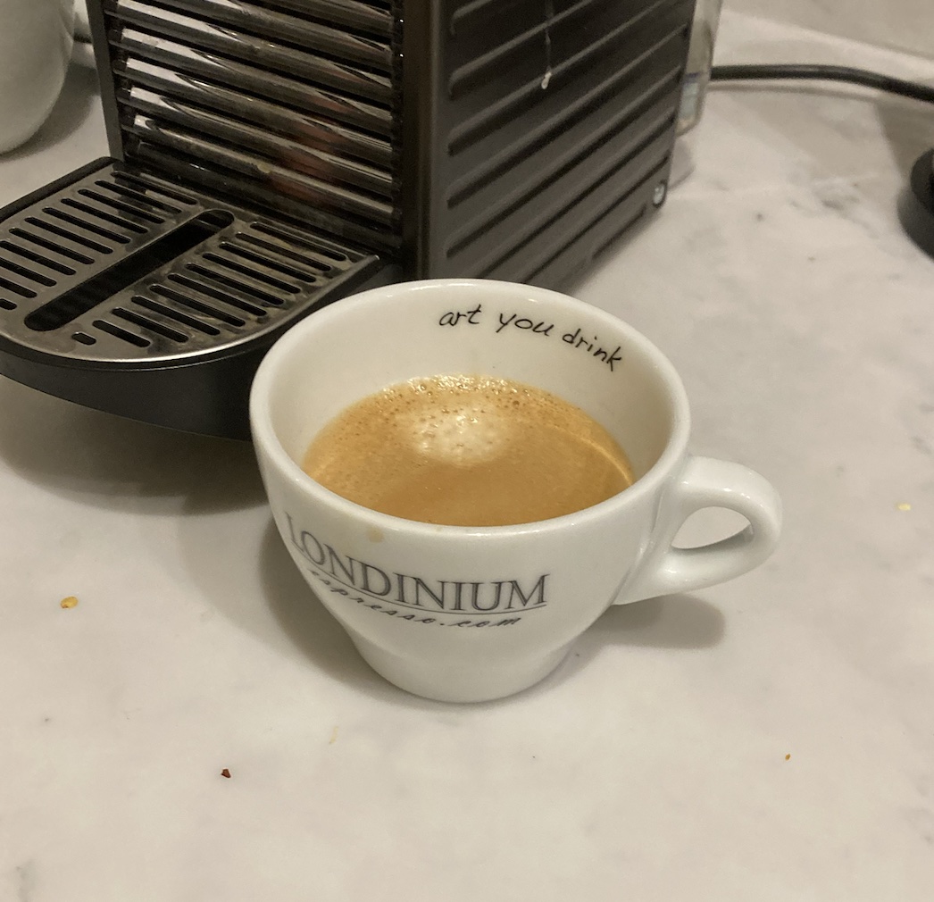 So far, on my sixth cup of Nespresso coffee this morning.
