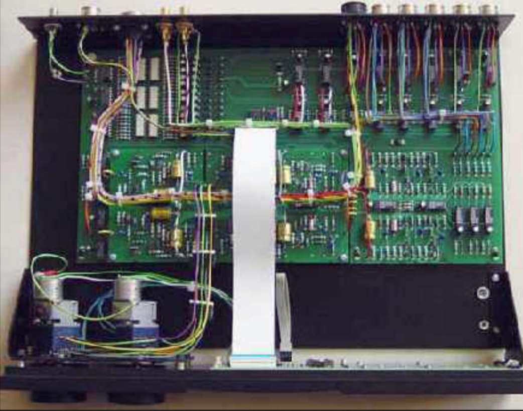 If you look closely (hard to see from above) you’ll see that while they look superficially similar, the NAC282 is mostly on one large board, whereas on the NAC252 the boards are split. Layout is slightly different, obviously more wiring on the 252 as there are many more supplies from the Burndy connection. Componentry even more rigorously selected in places.