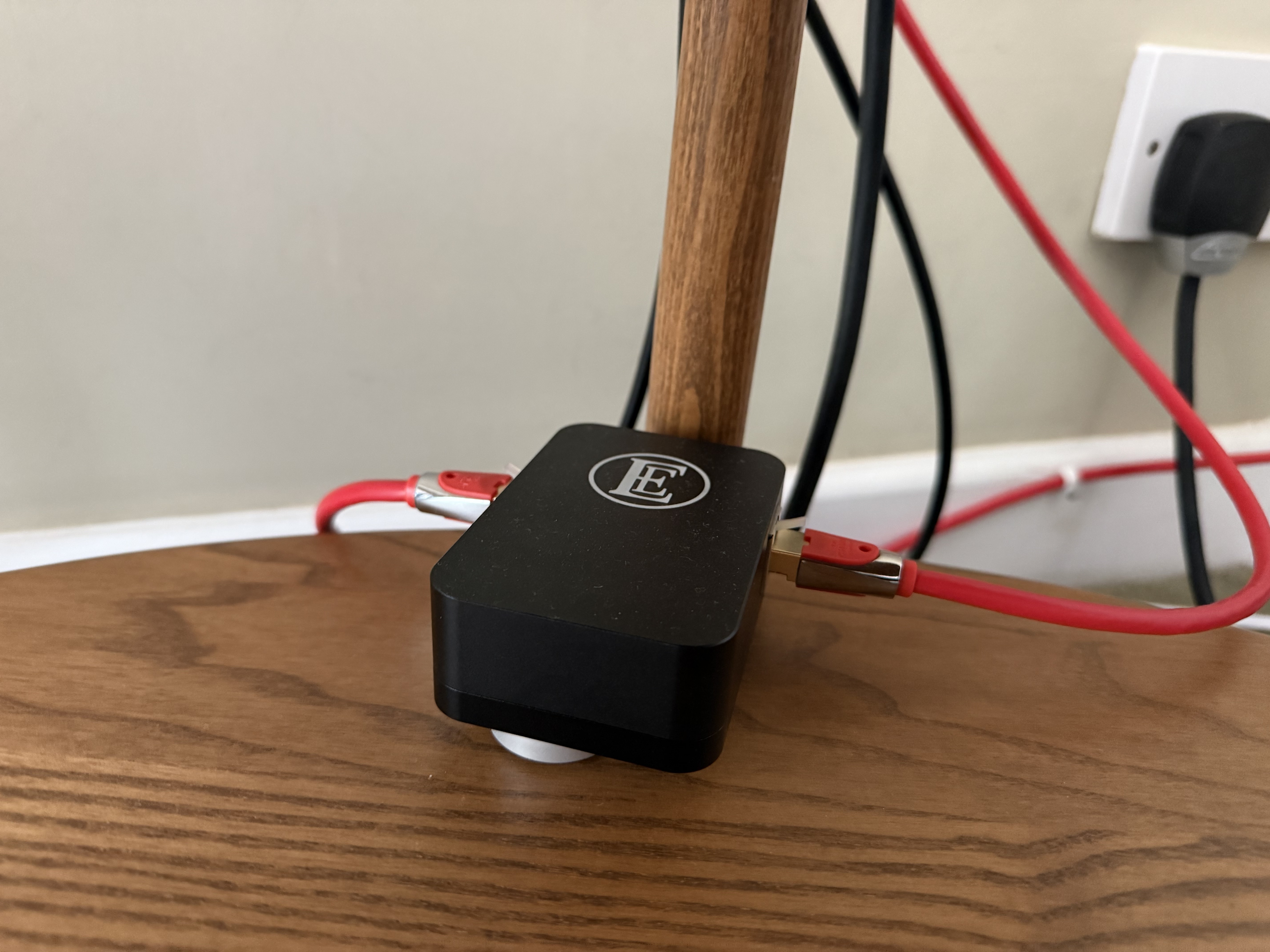 It’s an English Electric EE1 plus, made by the Chord Company. Its purpose is to reduce noise. It sits between the switch and my Atom HE. I have its smaller sibling, the EE1, between my router and the switch. The two together work well, giving a more relaxed and natural presentation. They may not work for everyone, but they work for me.