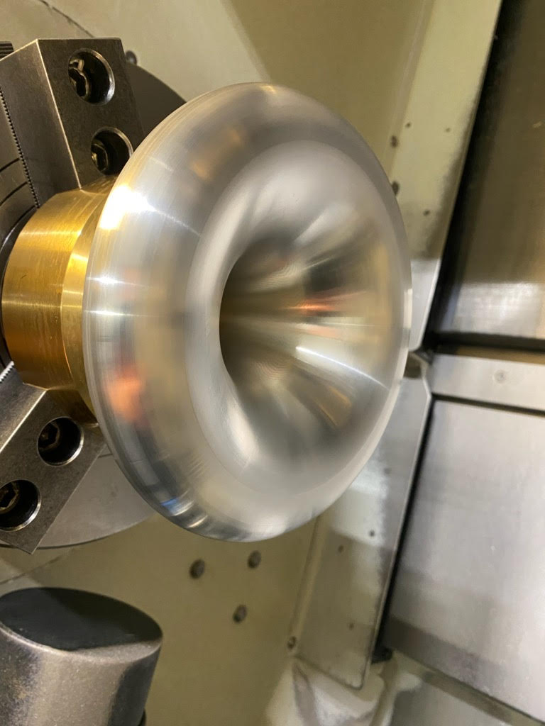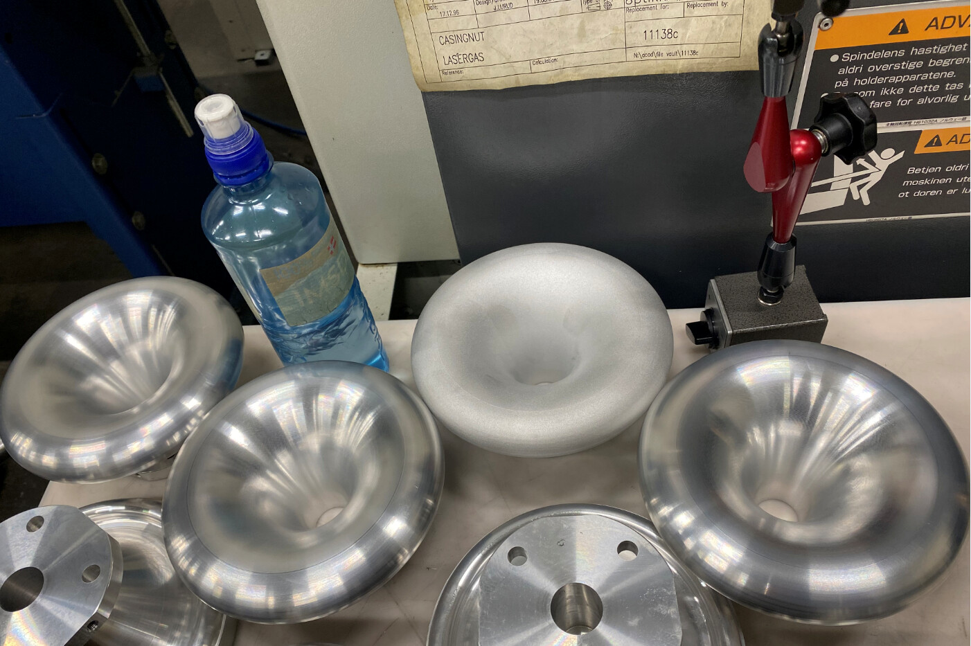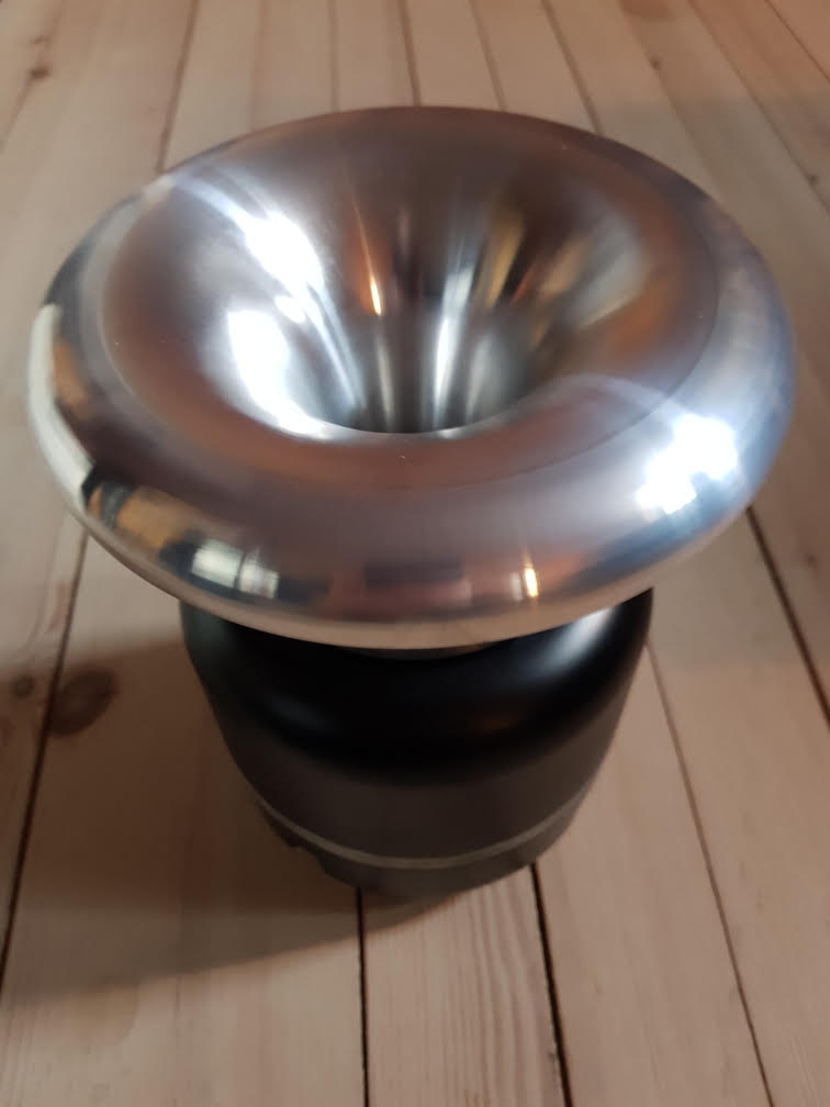 A JMLC 1175 horn in polished aluminium. Drawn by someone I used to know and another friend. And made by Schmidt & Iversen Mek Verksted AS in Oslo in 2021.