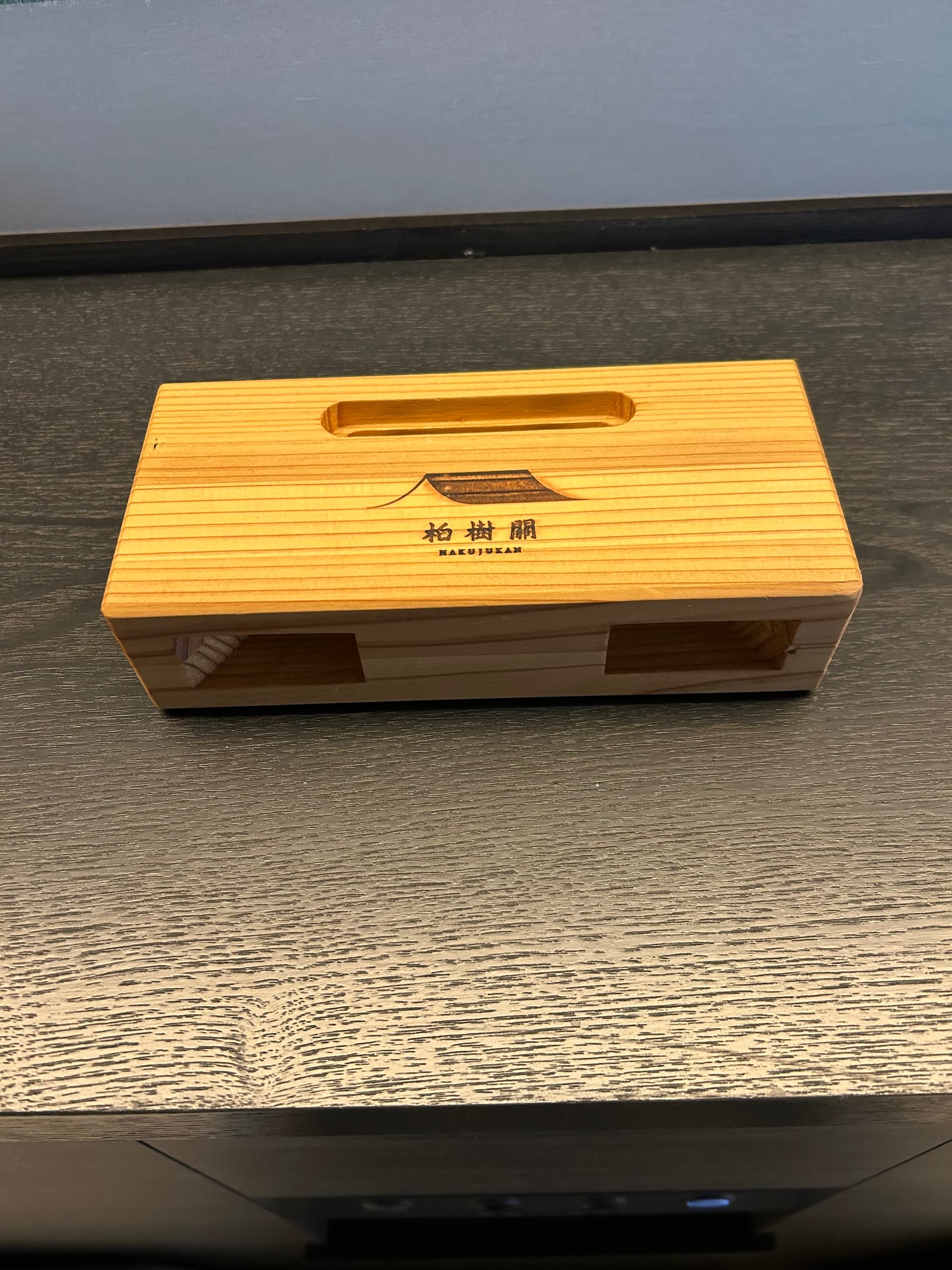 Some Japanese lofi - you stick your iPhone in the slot on the top and the two wooden channels below passively amplify the sound from the iPhone speakers. Surprisingly effective
