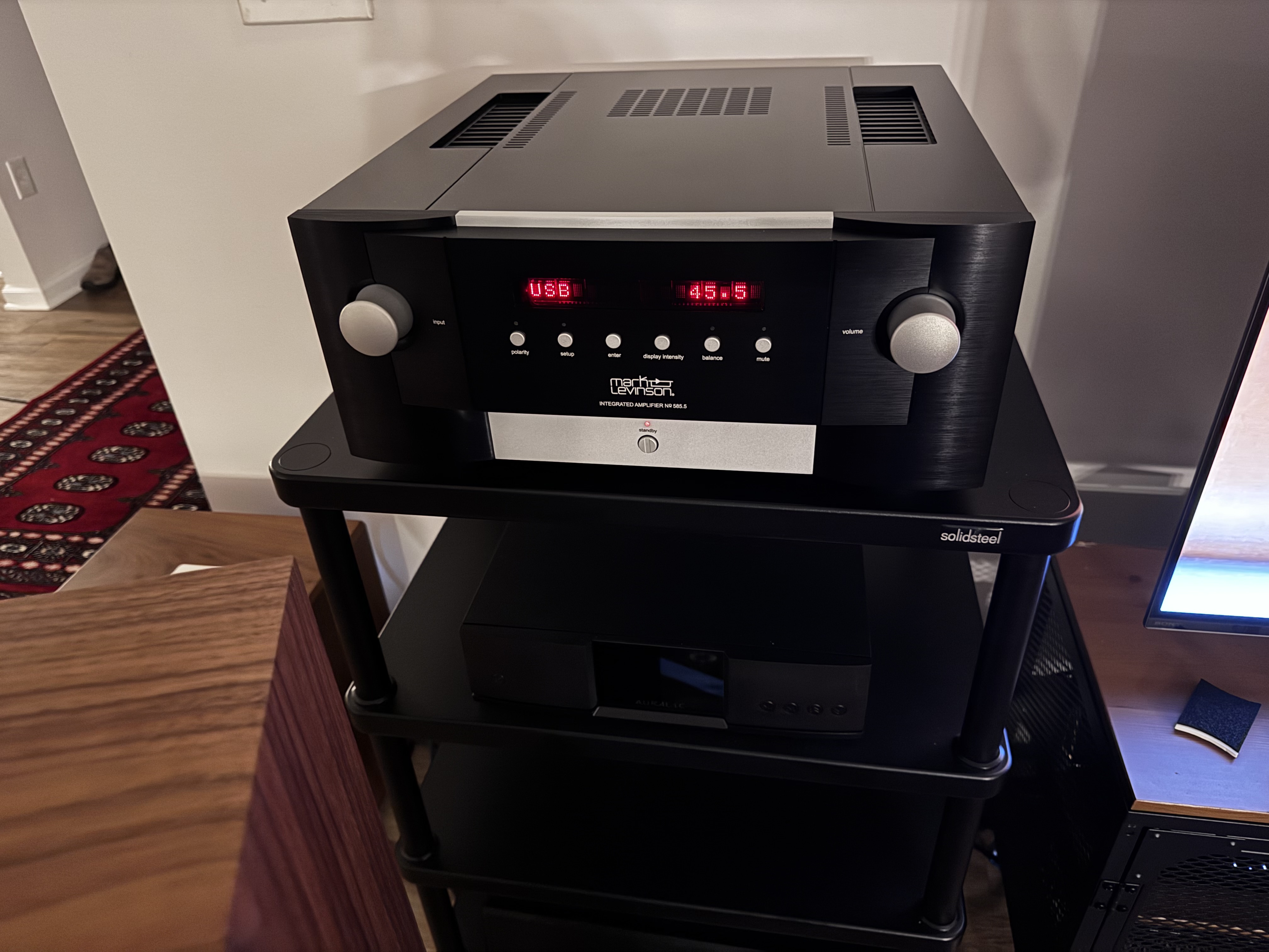 I just bought this Marl Levinson No. 585.5 integrated amplifier preowned but by the condition it could be new, it’s that perfect. I got a great price . It’s also a beast at 77 lbs , spoke with the previous owner he said it may have only 50 hours of run in and he never even used the USB input!
