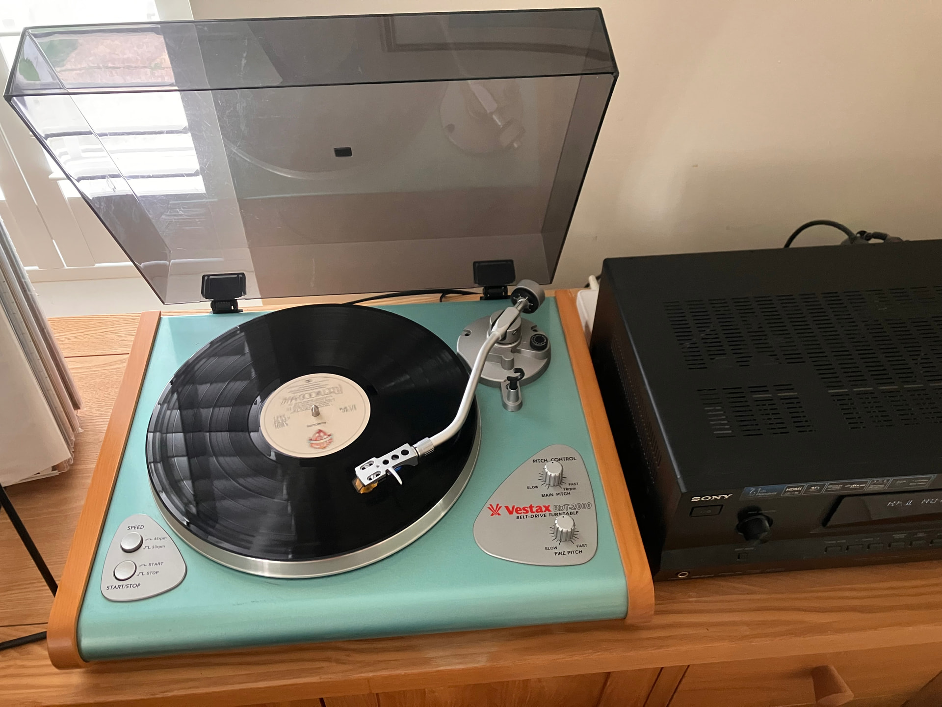Picked this up recently, without a belt and otherwise untested. New belt, drop of oil in the motor bearing and a tweak of the trim pots inside and its working like a charm. Rare made in Japan listening deck from Vestax who are mainly known for direct drive scratch decks and mixers. Designed with a built in (good quality) phono preamp to integrate with modern 90’s studio/hifi equipment when a phono input was not so popular. Also has infinitely adjustable pitch up to 92rpm for 78s. Sounds tip top connected to a Sony AV amp.