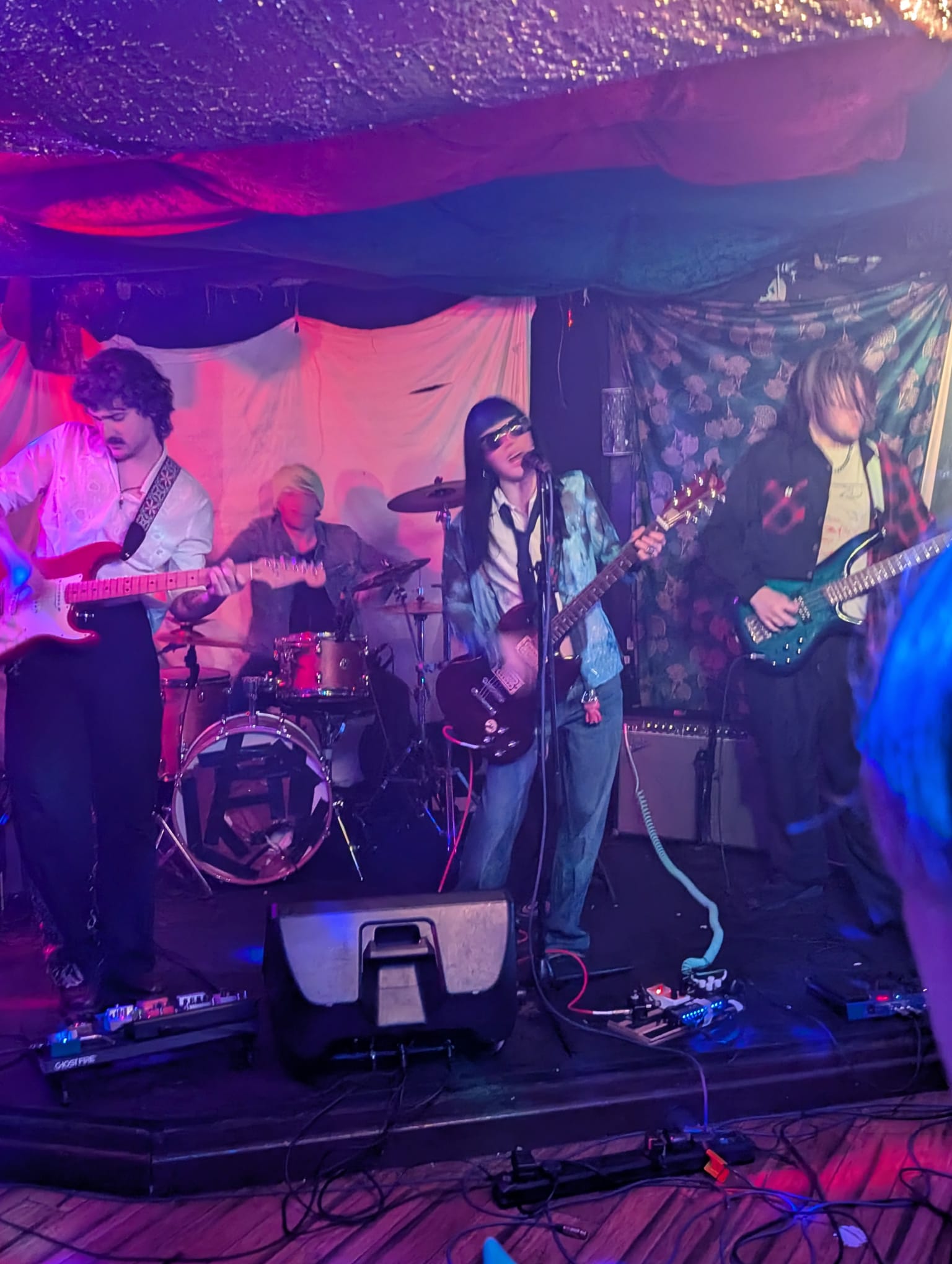 Lead singer, rhythm guitarist and songwriter had spent the previous night vomiting and had arrived looking like death and very subdued. Clearly very ill. Remarkable to see them so quiet as they’re one of the loudest most unfiltered people I’ve ever met. They spent the hours before the gig very quietly indeed.