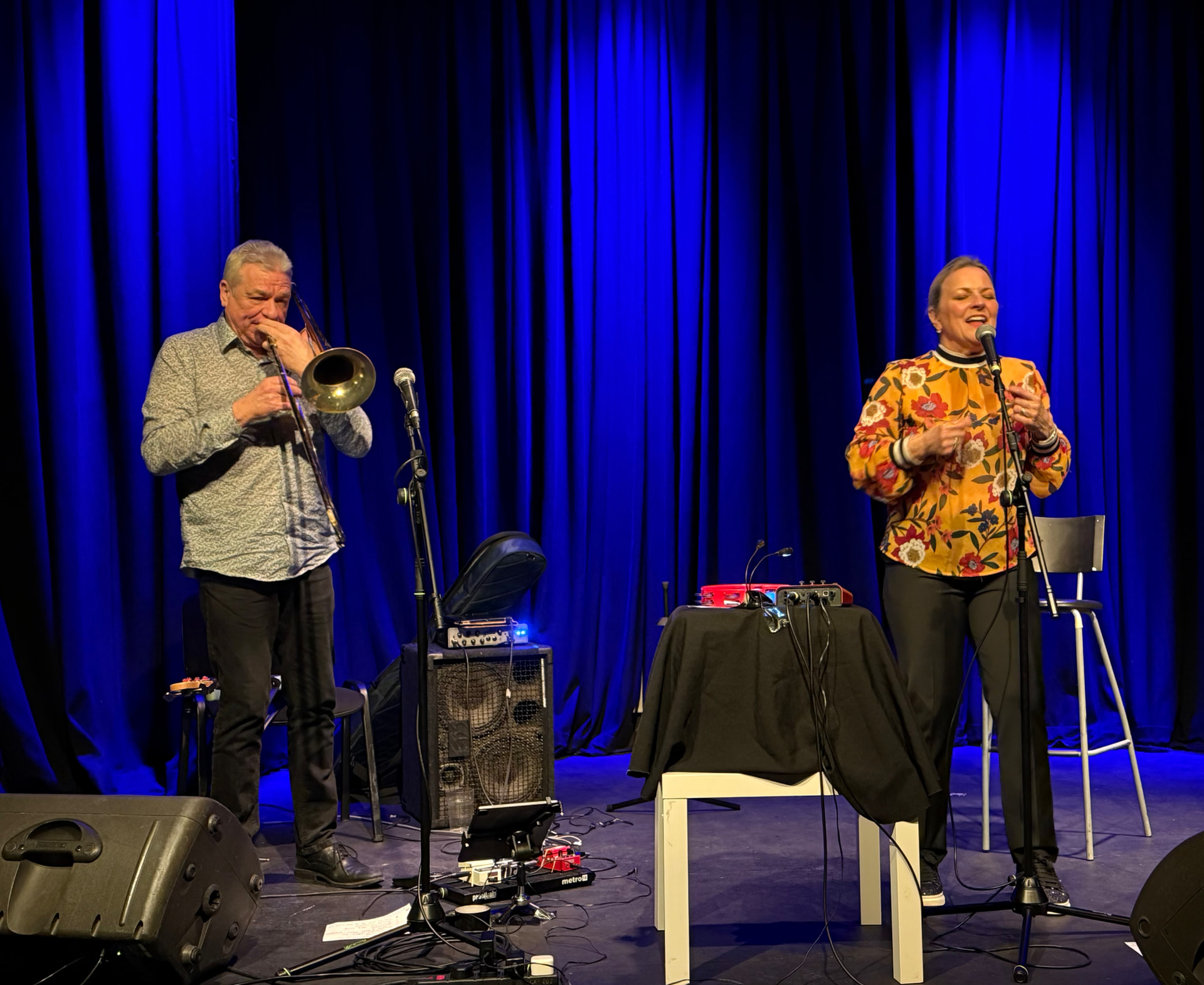 We saw Claire Martin and Laurence Cottle at the Spring in Havant earlier this evening. Laurence is the most amazing bass player and also plays the trombone. We were right at the front, which is always good.