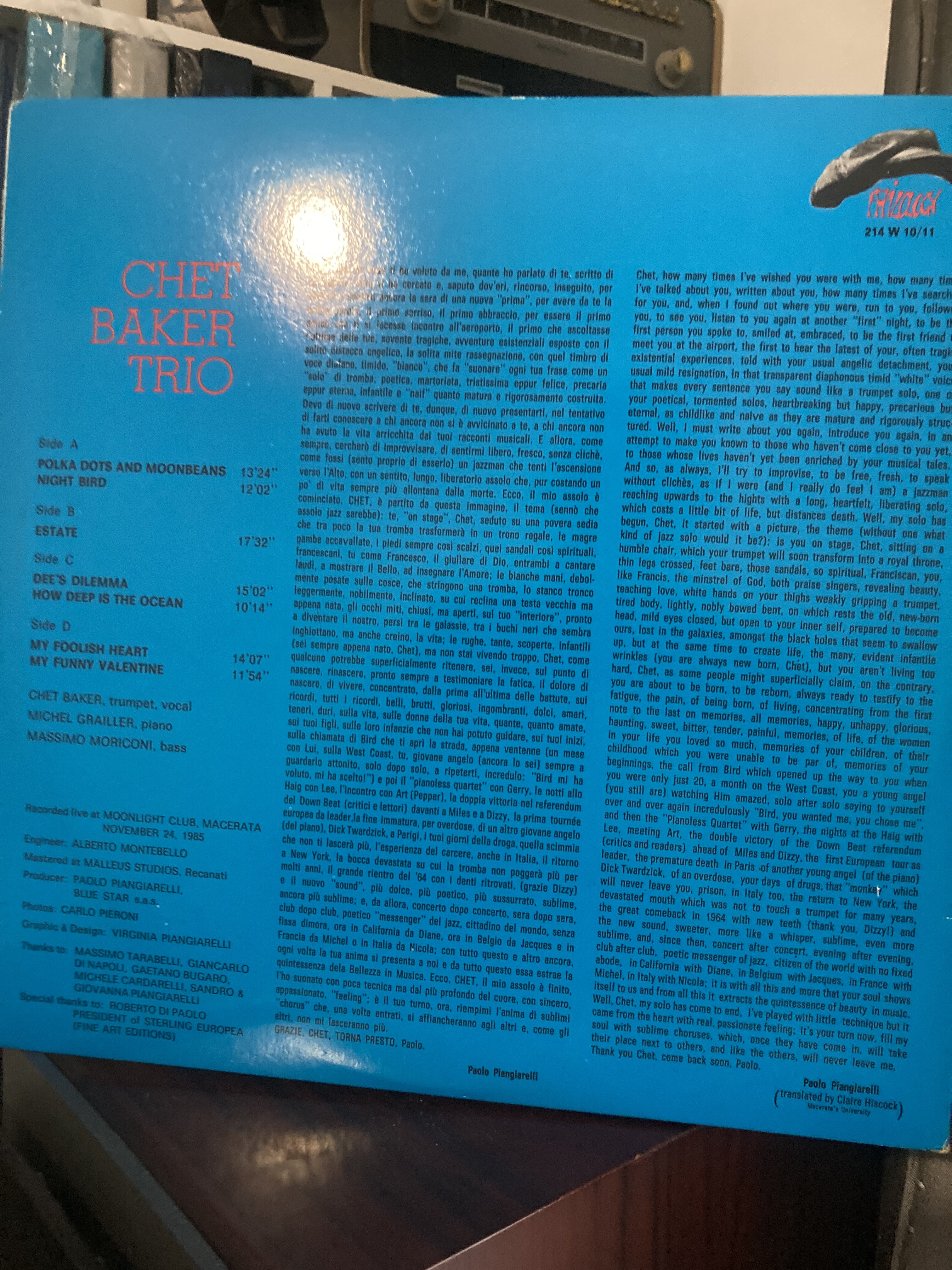 Beautiful record Chet’s playing along with Michel Grailler’s piano playing which at times is sublime.