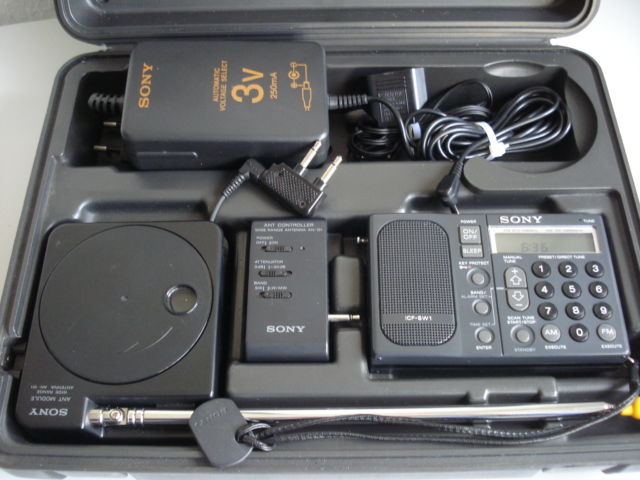 Sony ICF-SW1S, together with the posh carry case and full accessories kit.