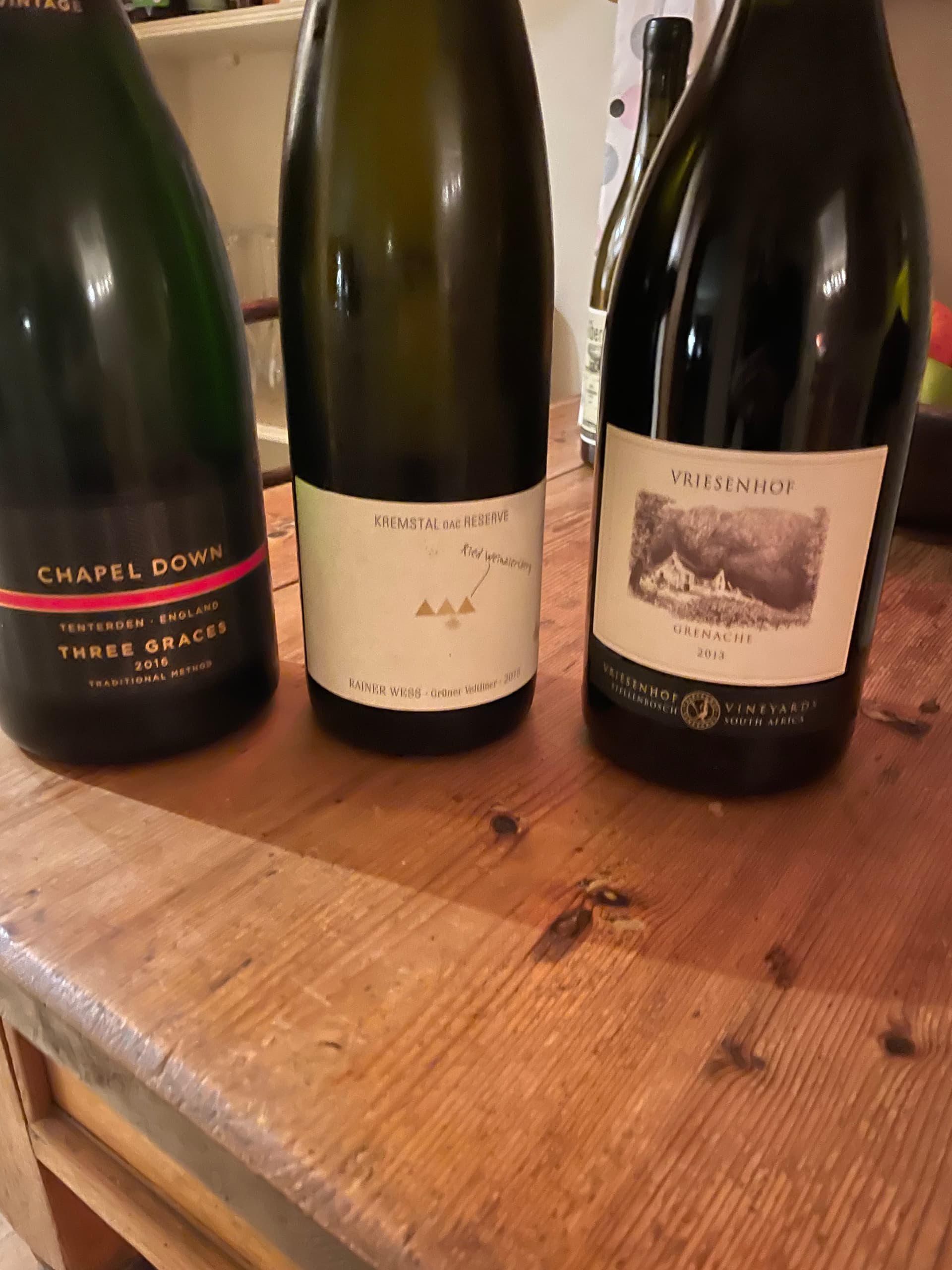 Dinner last night with neighbours so these magnums were put to good use. The 2016 Chapel Down Three Graces was probably the most enjoyable Cuvee from them that I have tried. Everyone went back for a top up. The Gruner was one served by the Wine Society at the last Christmas event I attended pre-pandemic. All the wines that night from magnum and it definitely made a difference in terms of their development in a very positive way. After a couple more years this one blew me away - so much complexity that I will have to try more in this style. The Grenache is one tried a few times since I met the winemaker - Jan Boland Coetzee - ex-Springbok and Adi Badenhorst’s father-in-law. Crunchy fruit and excellent perfume. Understated style which is so much better than big and brooding.
