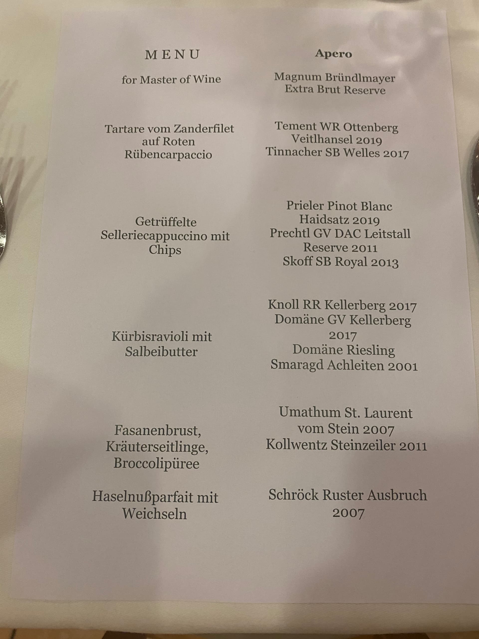 Here is the list, and the menu. Was a lovely evening. Heidi’s Ausbruch was the only empty one when we left…