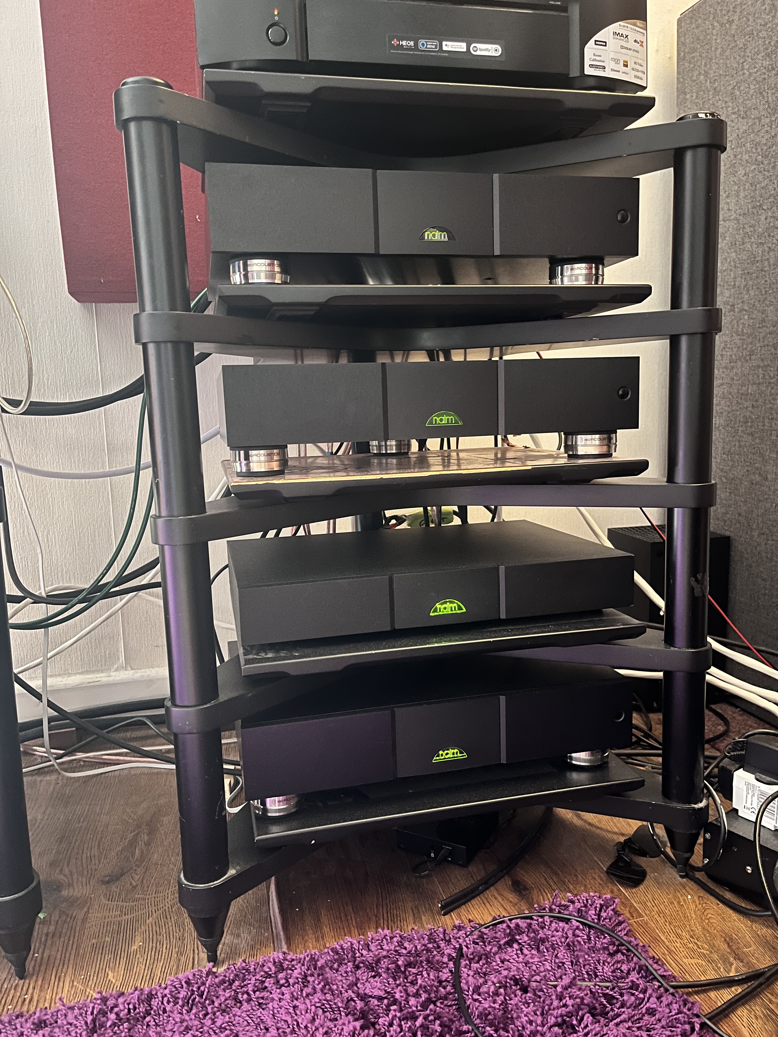 As HH said Naim gears are very sensitive to what they sit on, and the feet are part of the sound. Now seeing all those Isoacoustics feet and platform I could imagine the Naim sound has substantially changed, and no bass! – based on my previous experience with Iso.