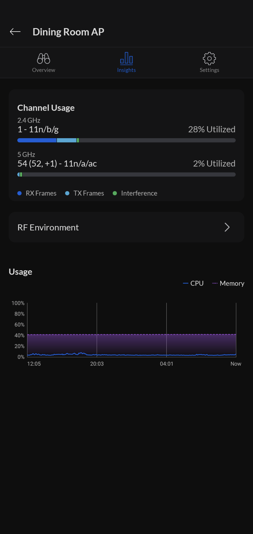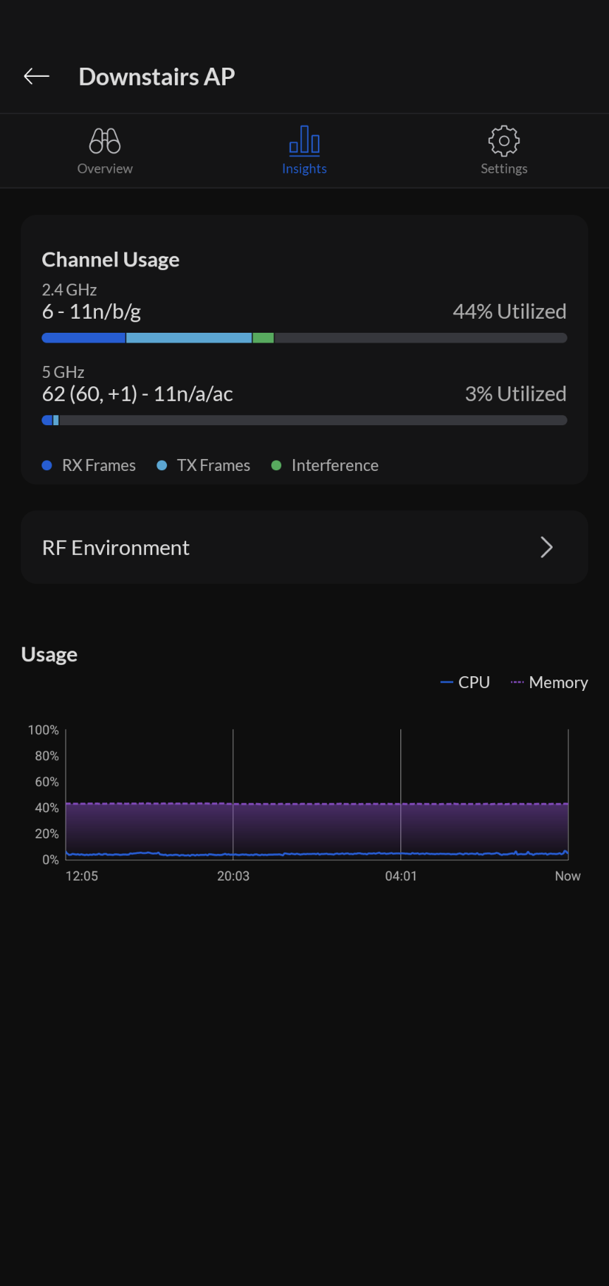 Which I could get less crowded on my 2.4ghz like yours, Rx frames are too high here and I only have about 4 X 2.4ghz devices across 3 aps. Some times of the day it’s as high as 70 -80% utilised. Price I pay for being in a built up suburb. No issues with 5ghz.