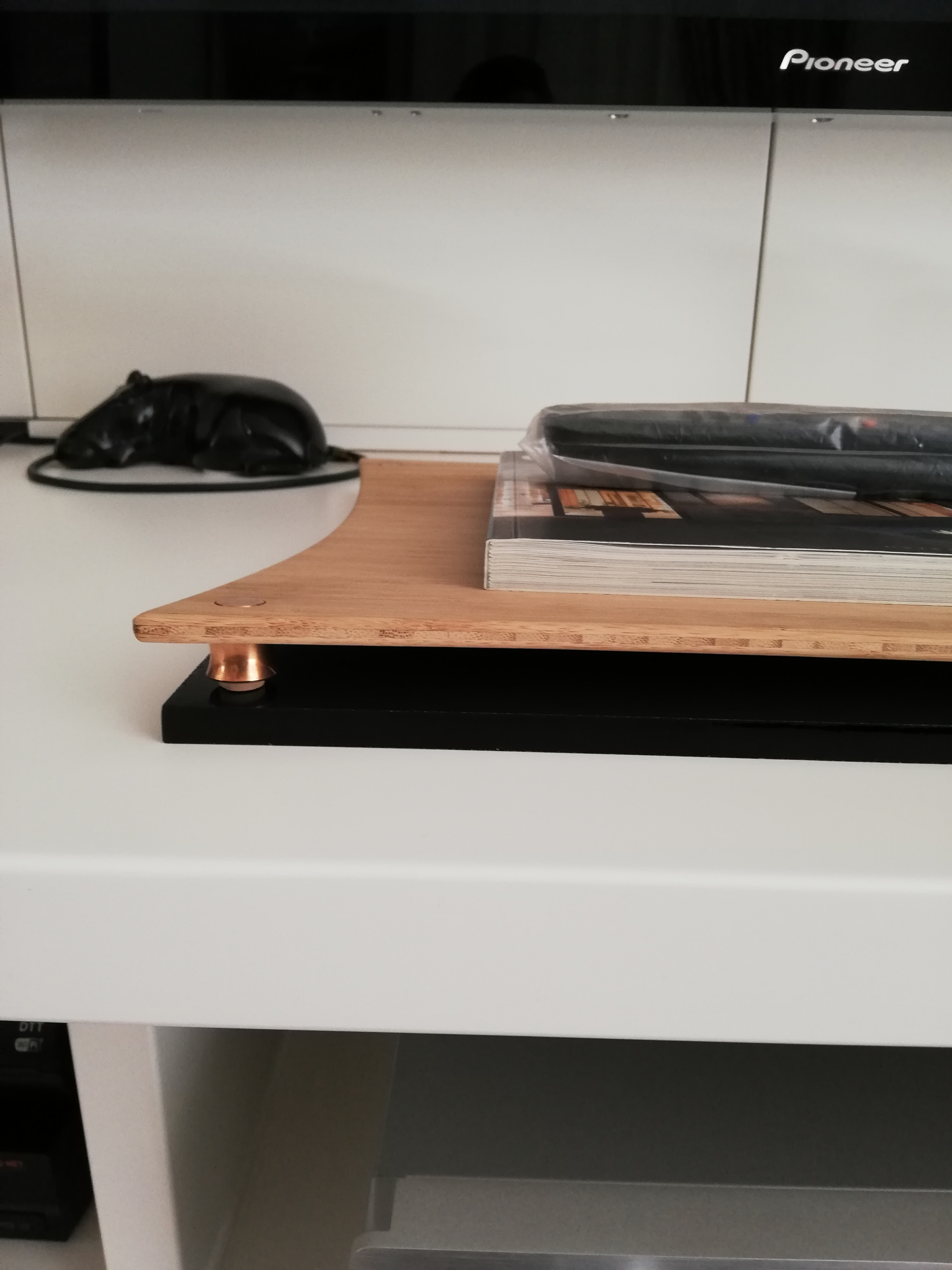 This morning I thought of one of the two different solutions besides just the glass plate … Also to make the Quadrasphire sound stage table work well …
