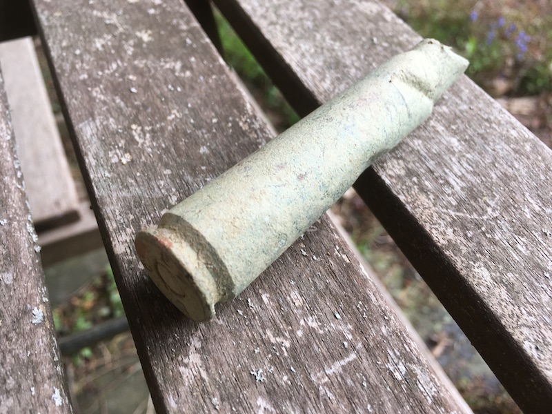 Fascinating Richard, I had a similar find when rotivating part of my garden some years back. We live close to what was a 2nd World War US heavy bomber base that flew B25 Mitchells and then B17s for a few years in the war as part of the US 8th Army Airforce.. and I assume the ammunition was dropped or fell from one of those planes.. perhaps damaged returning to land. It was unfired, and presumably live