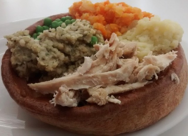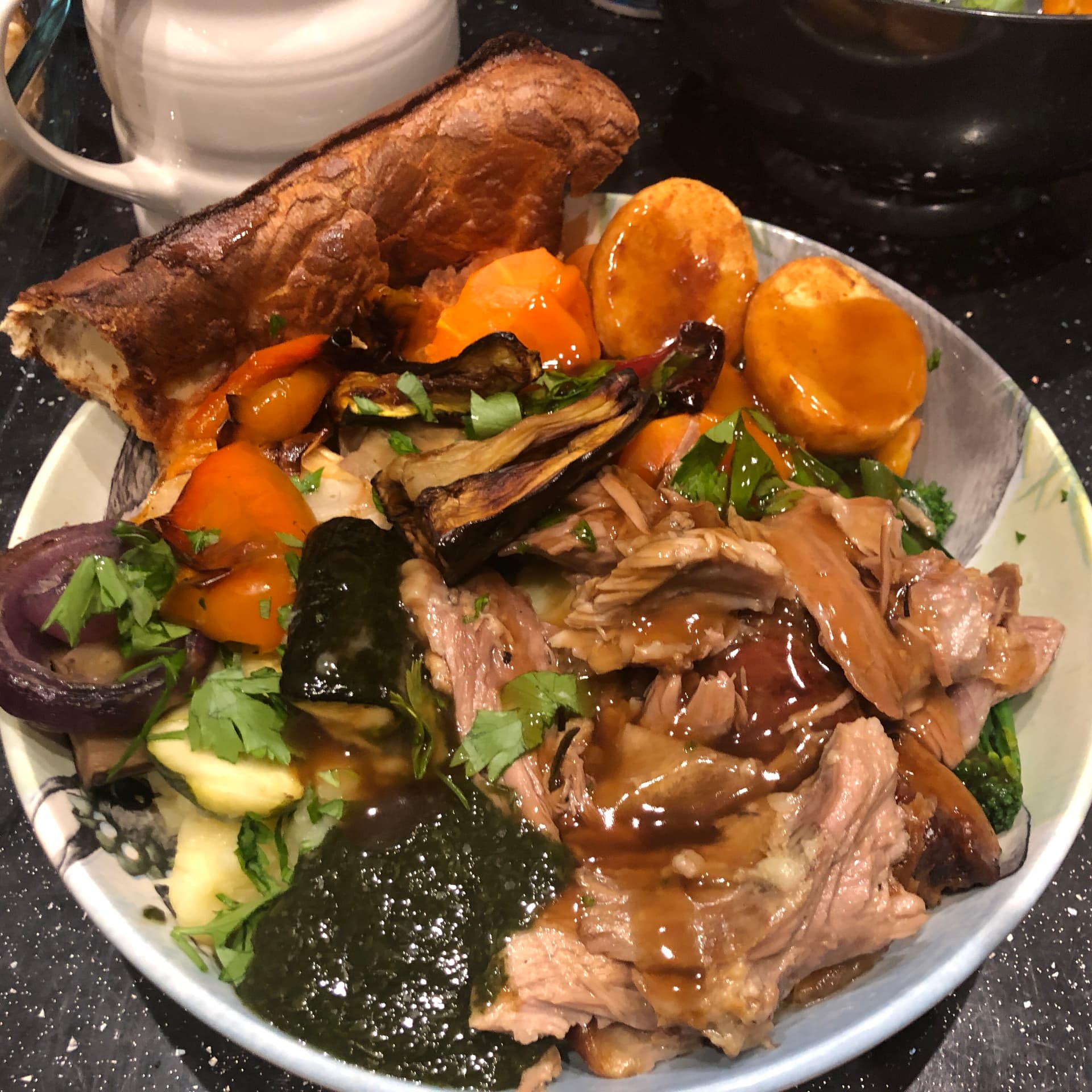 Maybe a giant Yorkshire pudding with the roast contents contained within.