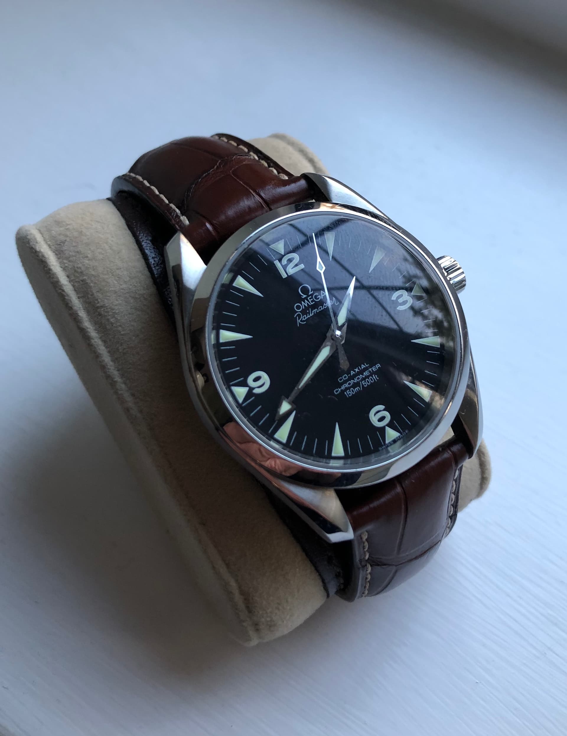 One of my favourite watches, Omega Railmaster, love the simplicity of it. Based upon a 1930s design I think, and apparently standard issue to RAF pilots after the war. Although many watches seem to claim this !