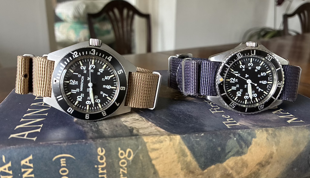 On both watches the tritium is long past its best, but still it’s very legible in pitch dark once your eyes have adjusted properly. It glows even in the early hours of the morning long after even modern Luminova has faded almost to nothing. Both watches are essentially my daily “beaters”, getting used around the garden and the farm on most days, and are extremely comfortable to wear on their Timefactors Nato straps.